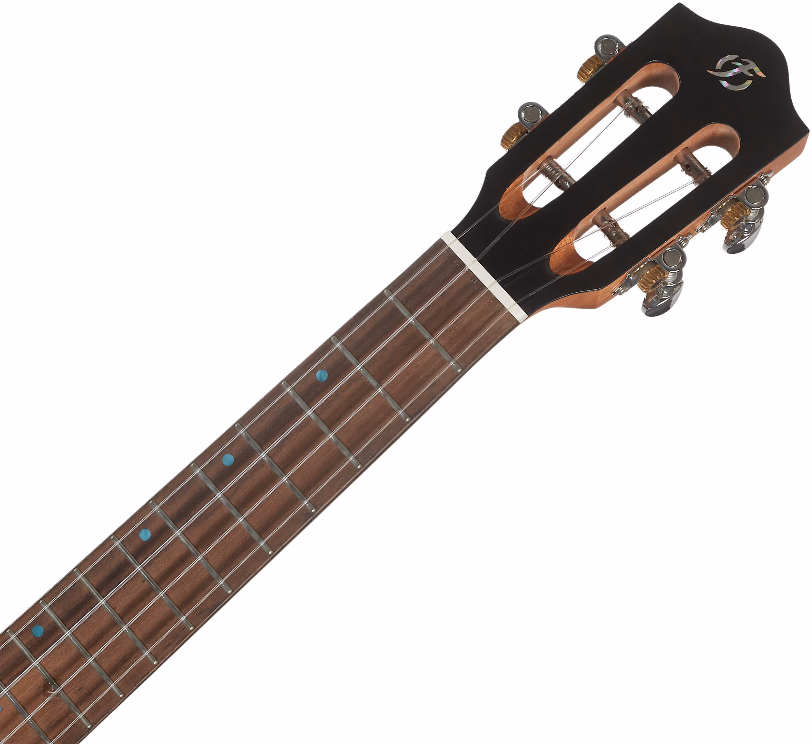Die Tenor-Akustik-Ukulele IRIS TINTA TENOR TDB der slowenischen Marke Flight ist ein Instrument mit einer massiven Konstruktion aus massivem Mahagoni. Der Mahagonikorpus verleiht dem Instrument einen wunderschönen warmen Klang. Die Ukulele verfügt außerdem über einen Hals aus Okoumé-Holz, ein Palisander-Griffbrett und einen Steg, einen Sattel und einen Nullbund aus Knochen sowie eine Reihe interessanter Designelemente.