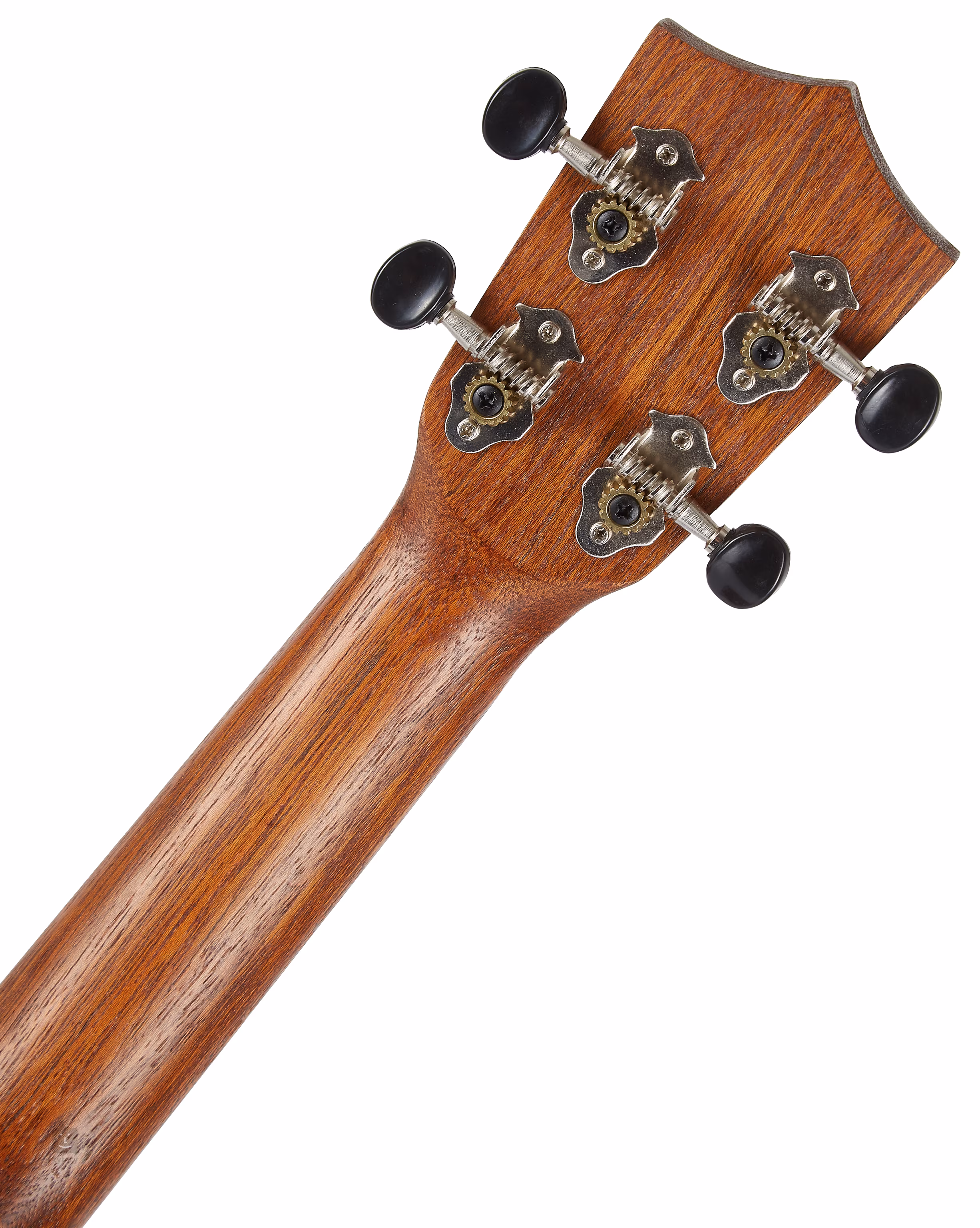 Der Korpus dieser Sopran-Ukulele ist aus laminiertem indonesischem Teakholz gefertigt. Die für den Hals, das Griffbrett und die Kopfplatte verwendeten Materialien stammen ebenfalls aus Indonesien - insbesondere Meranti (ein Holz, das optisch dem Mahagoni ähnelt) und Nandu. Spieler mit größeren/stärkeren Fingern werden sich über das breitere Griffbrett (38mm Nullbund) freuen, das mehr Platz bietet, um die Finger in einen Akkord zu falten. Die Saiten sind über einen Nullbund und einen Sattelbund aus Kunststoff in offenen, gitarrenähnlichen Stimmmechaniken verankert.