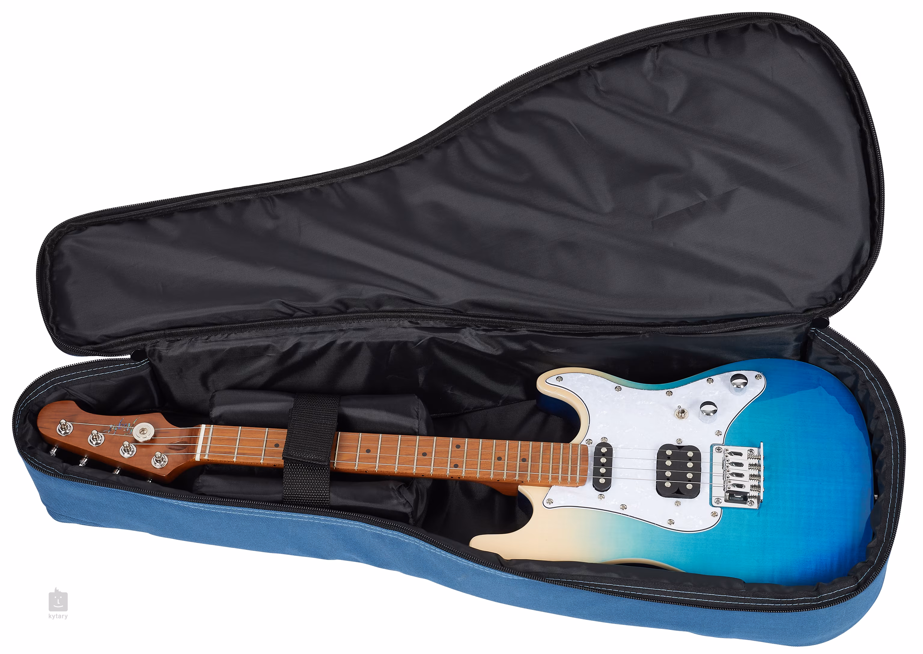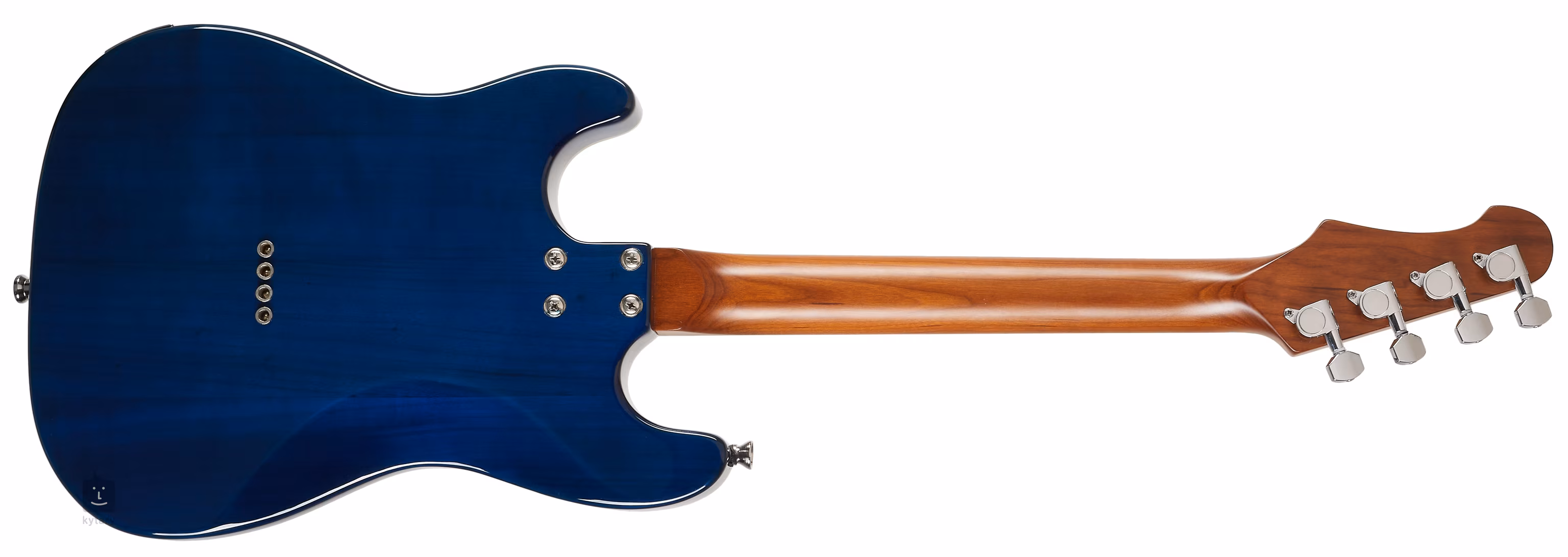 Die Pathfinder TBL Tenor-Ukulele verfügt über die Double-Cut-Korpusform der ST-Modelle. Der massive Lindenkorpus des Instruments ist mit einem spektakulären geflammten Ahornfurnier verziert, das von einer beeindruckenden Transparent Gradient Blue-Lackierung überzogen ist. Hals und Griffbrett des Instruments sind aus wärmebehandeltem Ahornholz gefertigt, das im Ofen getrocknet wurde, um ihm den dunkleren Farbton und das Gesamtgefühl eines bereits bewährten Instruments zu verleihen. Die Orientierung auf dem Griffbrett wird durch schwarze Positionspunkte erleichtert.