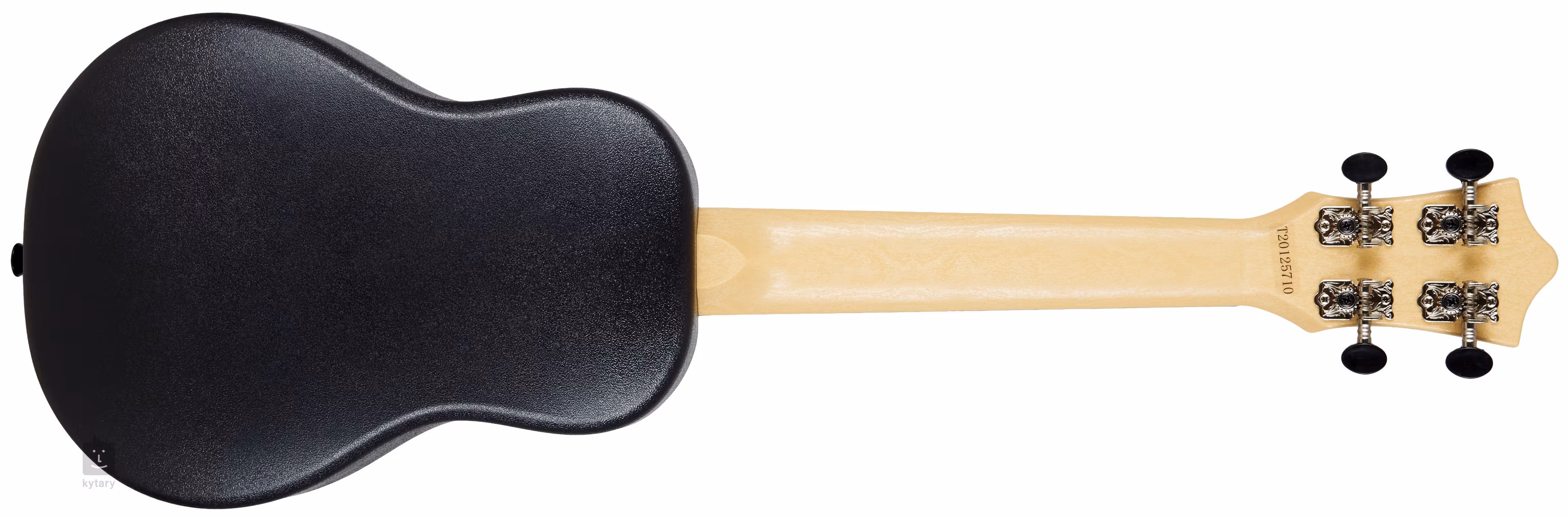 Der Korpus dieser Konzert-Ukulele besteht aus einem Kunststoffkörper und einer laminierten Lindenholzdecke, die mit grafischen Motiven verziert ist. Die breitere, gewölbte Rückwand der Ukulele lässt das Instrument klarer und lauter klingen als herkömmliche Konzertmodelle. Hals und Griffbrett bestehen ebenfalls aus ABS-Kunststoff, wobei das Halsdesign die Maserung von Holz imitiert. Die Saiten sind über Null- und Sattelbünde aus Kunststoff in gitarrenähnlichen Stimmmechaniken (Geared) und einer Kunststoffkopfplatte verankert. Das stilvolle Aussehen des Instruments wird durch das Limonenfurnier auf der Kopfplatte unterstrichen, das farblich auf das Finish der Decke abgestimmt ist.
