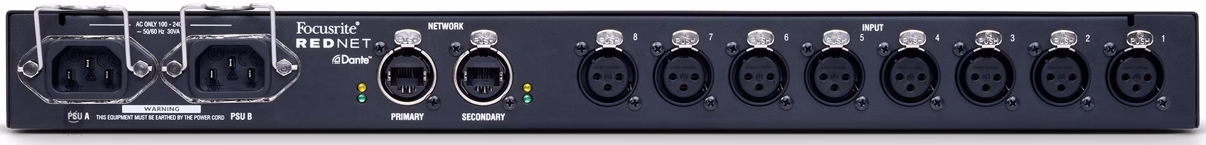 Der MP8R basiert auf dem ferngesteuerten Mikrofonvorverstärker RedNet 4 und wurde unter Mitwirkung führender Live-Sound-Experten entwickelt. Er bietet eine Reihe von Funktionen, die ihn besonders nützlich für Live-Sound-, Aufnahme- und Broadcast-Umgebungen machen, in denen maximale Zuverlässigkeit an erster Stelle steht. Es verfügt über zwei Ethernet-Ports (etherCON) mit verschiedenen Betriebsmodi, einschließlich Daisy-Chaining und Redundanz. Zwei separate Netzteile mit Fehlererkennungsfunktion sind im Lieferumfang enthalten, mit separaten Eingangsbuchsen auf der Rückseite. Stromausfälle werden sowohl aus der Ferne als auch an der Frontplatte angezeigt. Das MP8R zeichnet sich durch ein robustes Äußeres und qualitativ hochwertige interne Komponenten aus.