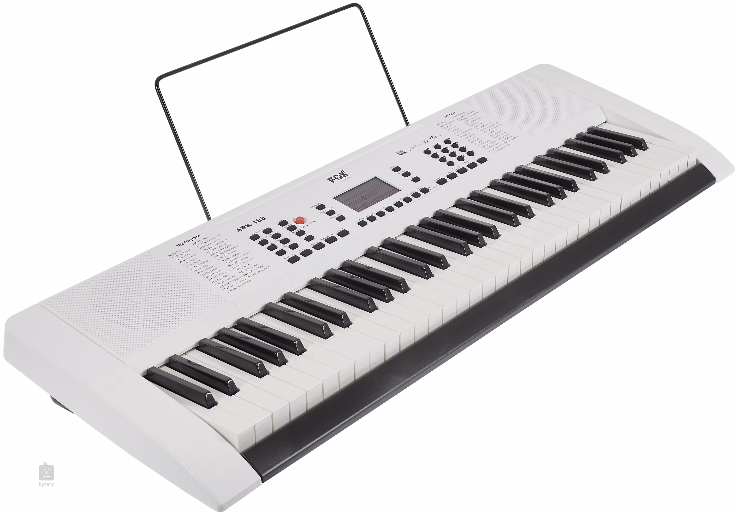 Das FOX 168 bietet 61 Tasten in Standardgröße mit Dynamik, 128 Sounds und 128 Begleitautomatiken. Außerdem gibt es erweiterte Funktionen wie Split (Aufteilung der Tastatur, um zwei Instrumente gleichzeitig zu spielen), Dual Voice (Überlagerung von Klängen) sowie Sustaine (Hall) und Vibrato-Einstellungen. Die Tastatur kann auch transponiert werden, was sowohl Anfänger als auch fortgeschrittene Spieler zu schätzen wissen werden. Natürlich gibt es die Möglichkeit, Akkorde mit einem Finger zu spielen, eine Aufnahmefunktion, um Ihre Experimente aufzuzeichnen, oder ein Metronom und ein Tutorialsystem. Sie können ein Mikrofon oder ein externes Gerät mit Ihren Lieblingsaufnahmen an die Tasten anschließen und damit jammen. Mit MIDI Out können die Tasten auch als Controller für Musiksoftware verwendet werden.