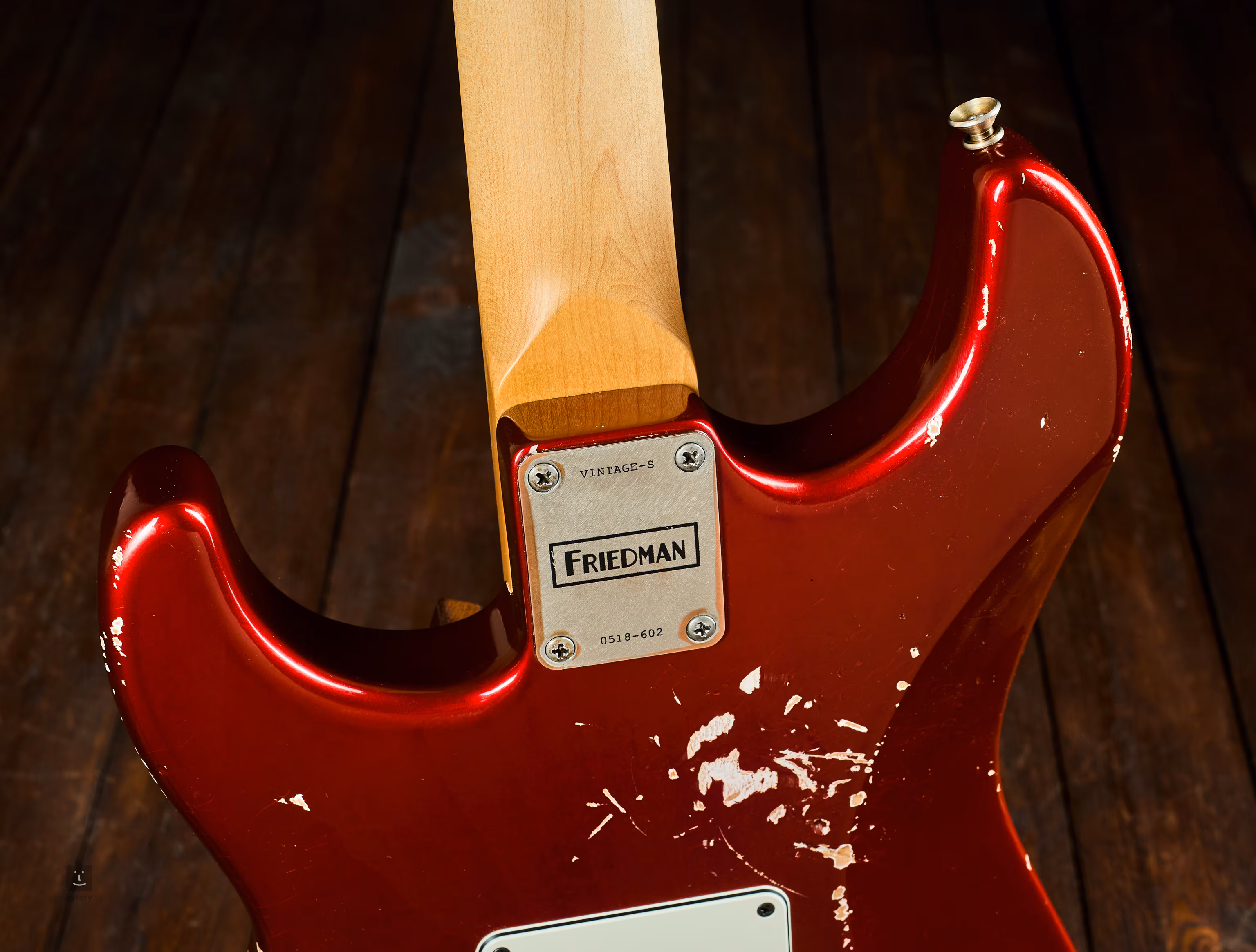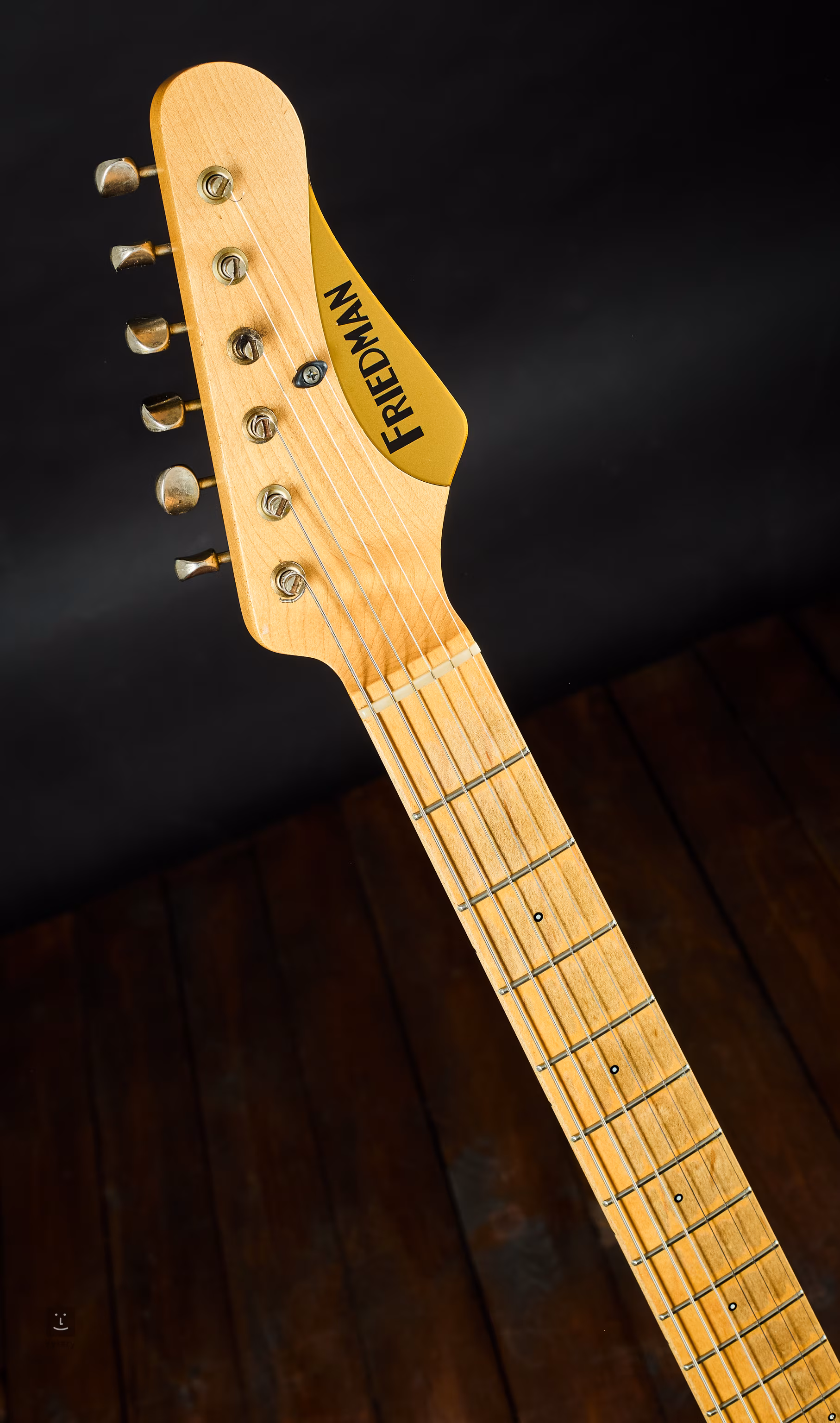 Erlekorpus, Ahornhals, Compound-Radius 10"–14". Bestückt mit Friedman Classic Humbuckern und klassischer Bedienung: 2× Volume, 2× Tone, 3-Wege-Schalter.