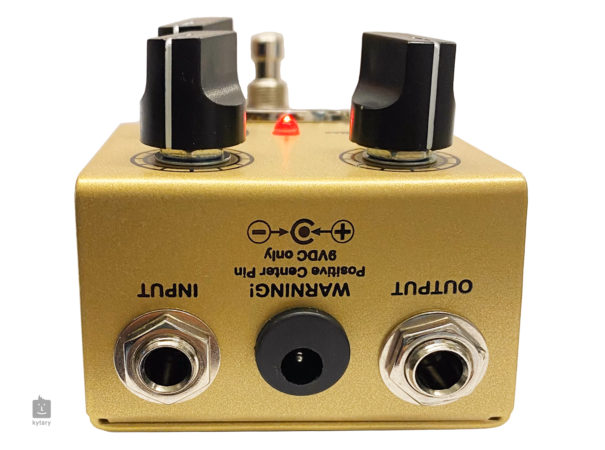 Die Box ist als True Bypass verdrahtet. Eine 9V-Batterie oder ein 9V-DC-Center-Positive-Adapter (nicht im Lieferumfang enthalten) ist erforderlich, um das Effektpedal mit Strom zu versorgen.