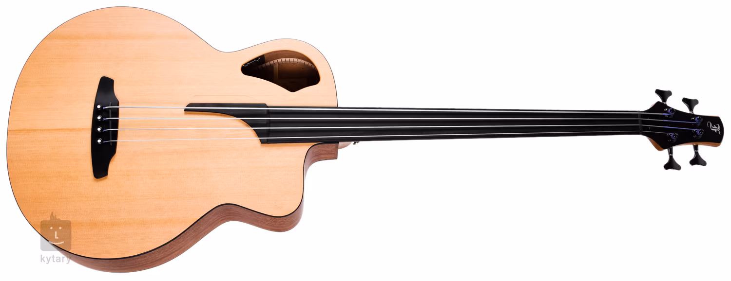 Der Furch-Akustikbass ist aus Vollmaterial gefertigt und verwendet eine firmeneigene Konstruktion für die Decke. Dieses Instrument ist ohne Kompromisse gebaut. Das Resonanzloch zum Beispiel mag in seiner Form wie moderne Kunst aussehen, aber seine Platzierung wurde sorgfältig gewählt, um die Leistung des Instruments im Bereich der tiefen Frequenzen zu maximieren.
