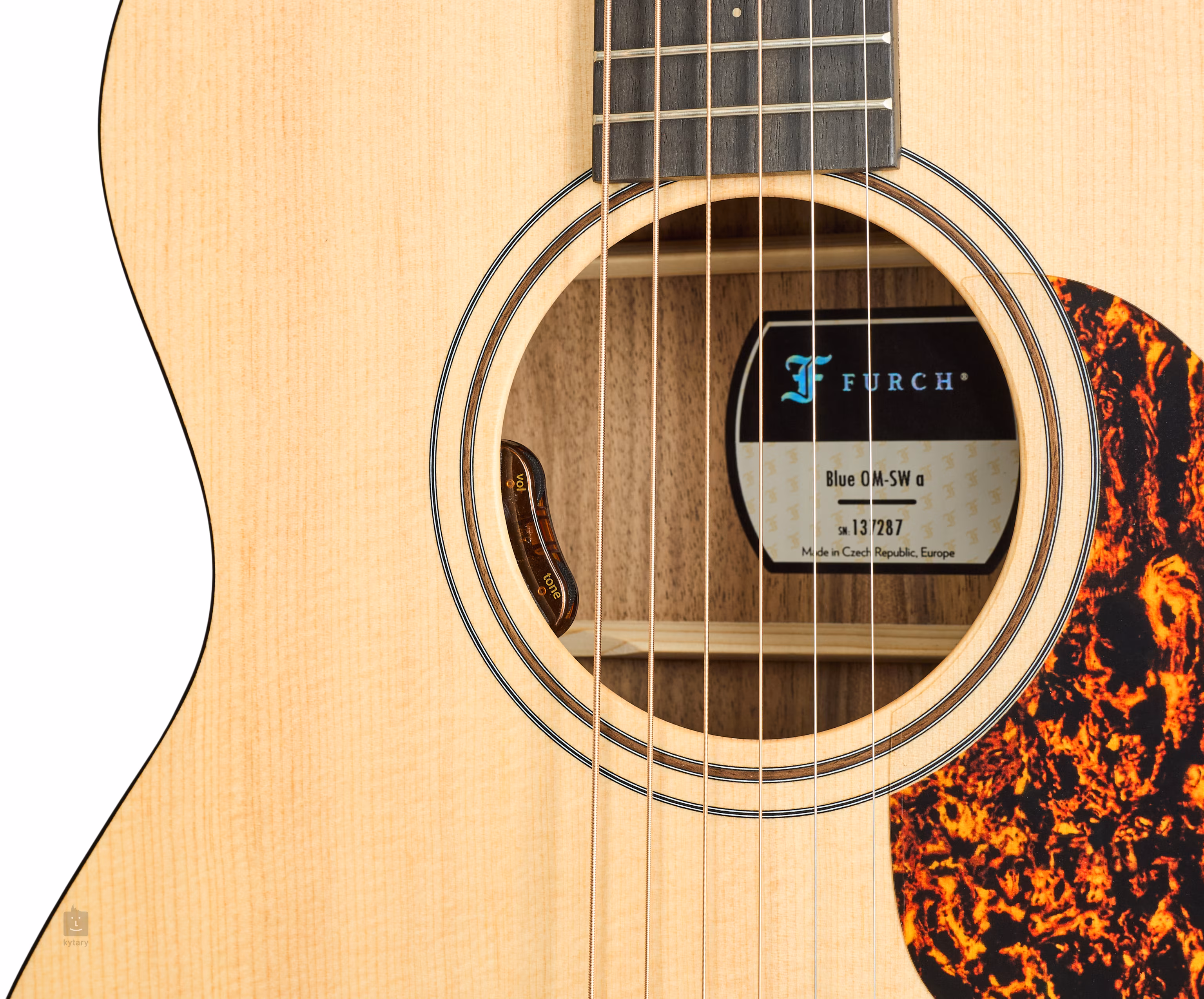 Die Furch Blue OM-SW L.R. Baggs EAS-VTC CNR Active ist eine elektroakustische Gitarre mit einem kompakteren Orchestra-Korpus (OM), der neben Spielkomfort auch die volle Dynamik des gesamten Klangspektrums und für einen so kleinen Korpus einen überraschend kraftvollen Klang bietet. Die Decke des Instruments ist aus ausgewähltem Sitka-Fichtenholz der Qualität AA gefertigt, der Boden und die Zargen sind aus schwarzem Walnussholz der Qualität A. Die Lackierung mit offenen Poren (Open Pore) bietet einen hervorragenden Schutz, erhöht die natürliche Resonanz des Instruments und unterstreicht die natürliche Struktur des Holzes. Die hervorragenden akustischen Eigenschaften werden durch eine spezielle Verrippung der Decke noch verstärkt.