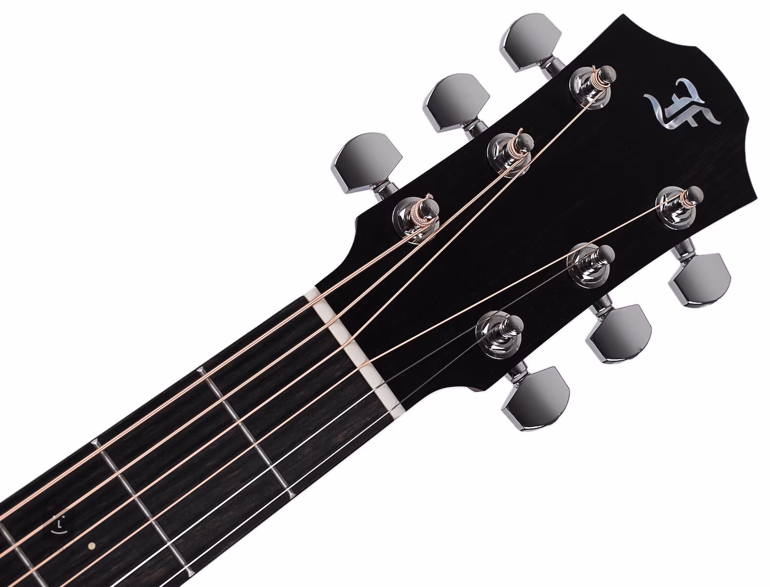 Die feine Verarbeitung der Furch Blue Plus Gitarren wird durch das Binding aus Schildpattimitat, die Doppelring-Rosette mit schwarzer Walnusseinlage, gebürstete Bünde und ein transparentes Schlagbrett, das die natürliche Schönheit des Holzes zur Geltung bringt, unterstrichen. Die Orientierung auf dem Ebenholzgriffbrett wird durch die seitlichen und vorderen Dot-Position-Marker erleichtert. Die präzise und stabile Stimmung wird durch verchromte Mechaniken mit einem Übersetzungsverhältnis von 1:18 gewährleistet.