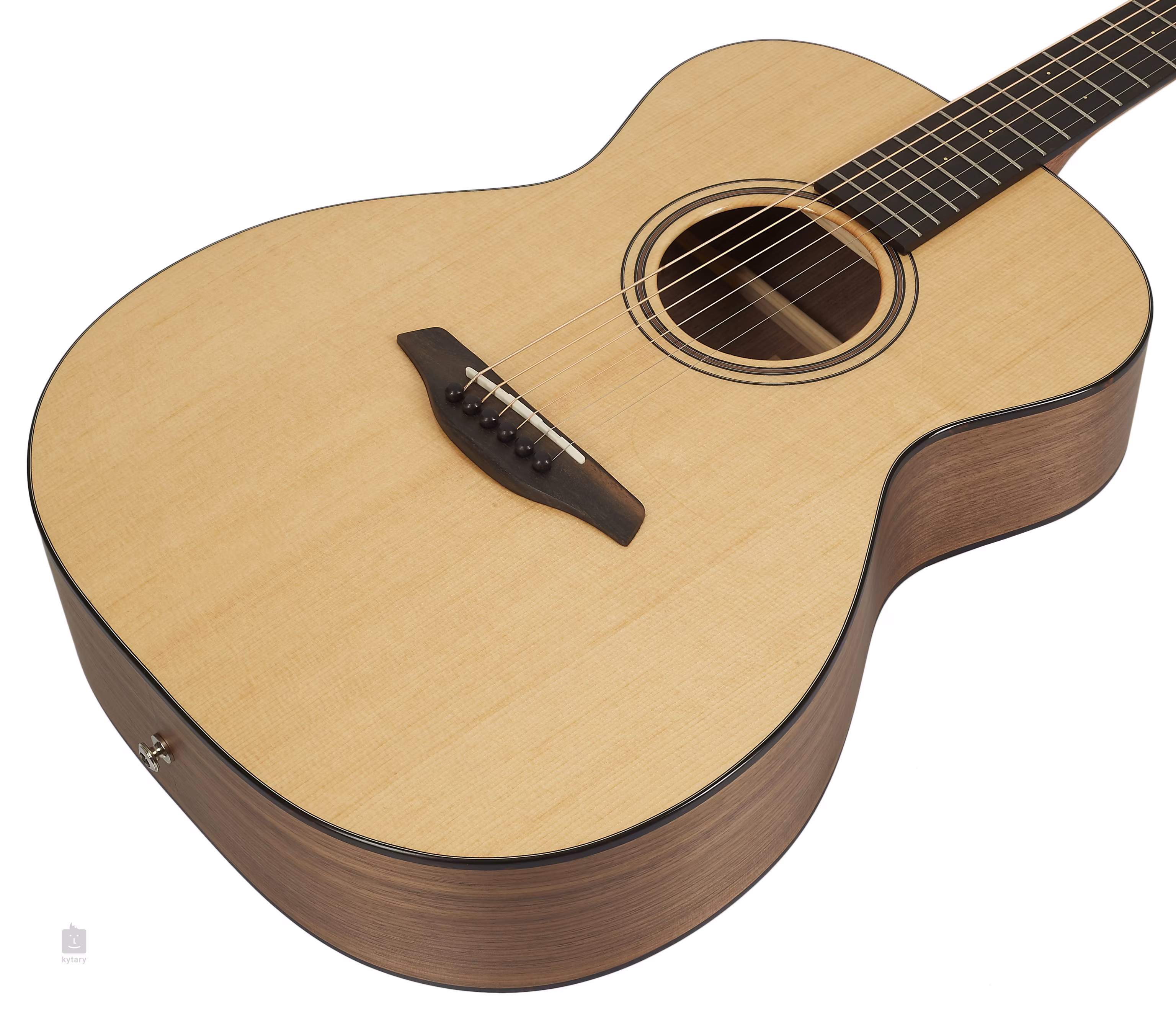 Die Frontplatte der Orchestra Blue Plus OM-SW CNR Active Akustikgitarre ist aus massiver roter Zeder der Güteklasse AA gefertigt, während Boden und Zargen aus ausgesuchtem Schwarznussbaum der Güteklasse A bestehen. Dank einer speziellen Full-Pore-Hochglanz-Lackierung ist die Vorderseite präzise poliert, während die Open-Pore-Lackierung von Boden und Zargen die natürlichen Poren des Holzes freilässt.