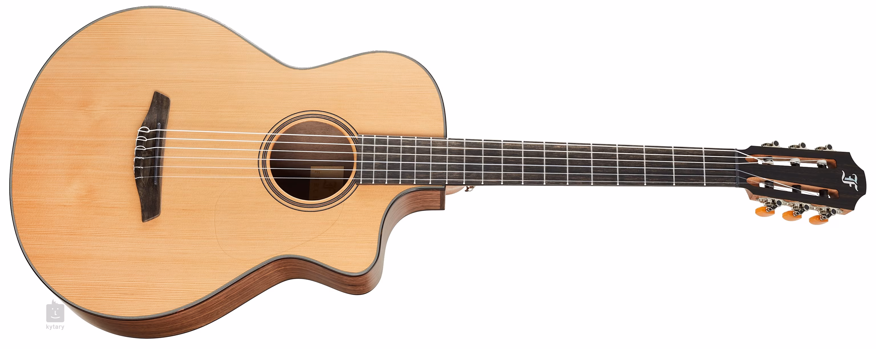 Das matt-transparente Schlagbrett schützt den Resonanzboden, ohne dessen Resonanz zu beeinträchtigen. Die Saiten sind in Furch Classical Nickel Mechaniken mit einer 1:16 Übersetzung und einem Ebenholzgriffbrett montiert. Die schöne Verarbeitung wird durch die Rosette aus schwarzem Walnussholz und die Schildpattimitation noch unterstrichen.