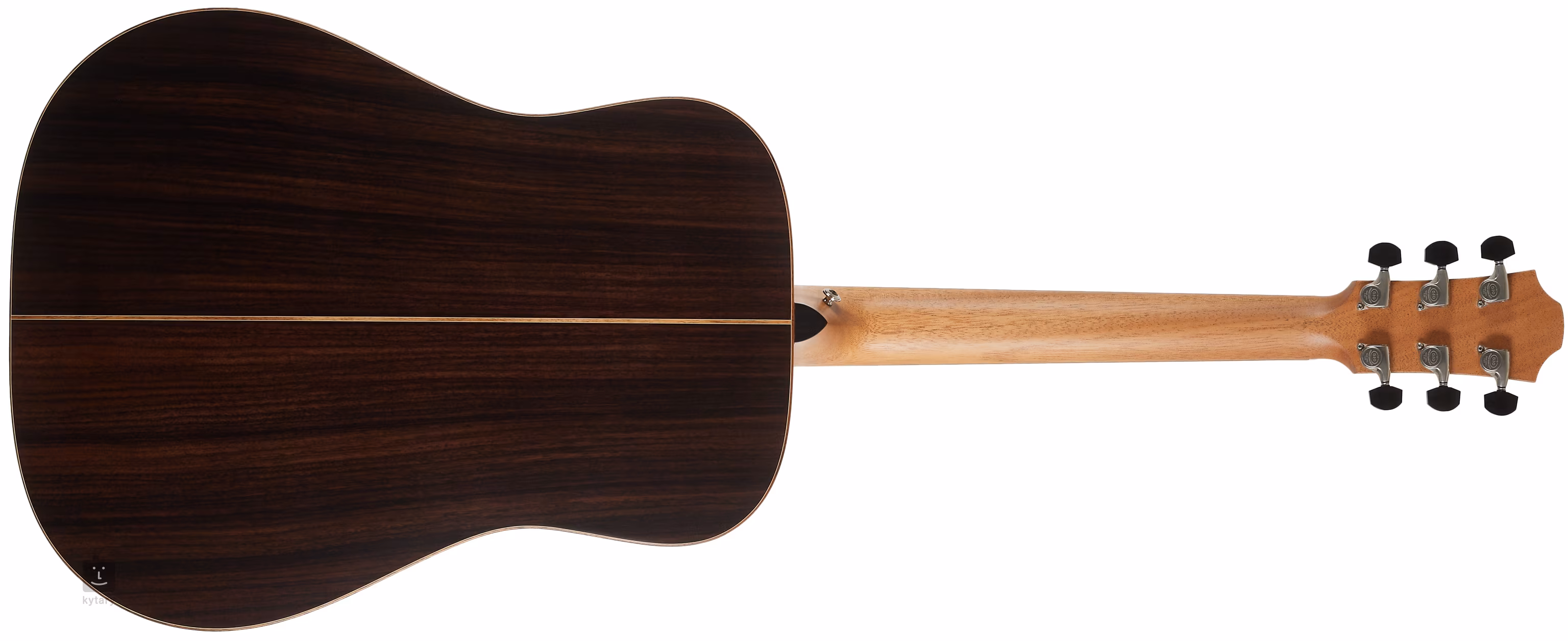 Die Orientierung auf dem Griffbrett wird durch seitliche Positionsmarkierungen aus weißem Perlmutt und unkonventionelle vordere Rechteckblöcke aus hawaiianischem Koa erleichtert. Der Full-Pore Smooth-Slide Satin Finish Hals optimiert die Bespielbarkeit und ermöglicht ein sanftes Gleiten von Akkord zu Akkord. Hochwertige Gotoh 510 Mechaniken in Silberpatina mit polierten Ebenholzwirbeln und einer Übersetzung von 1:21 garantieren eine stabile Stimmung.