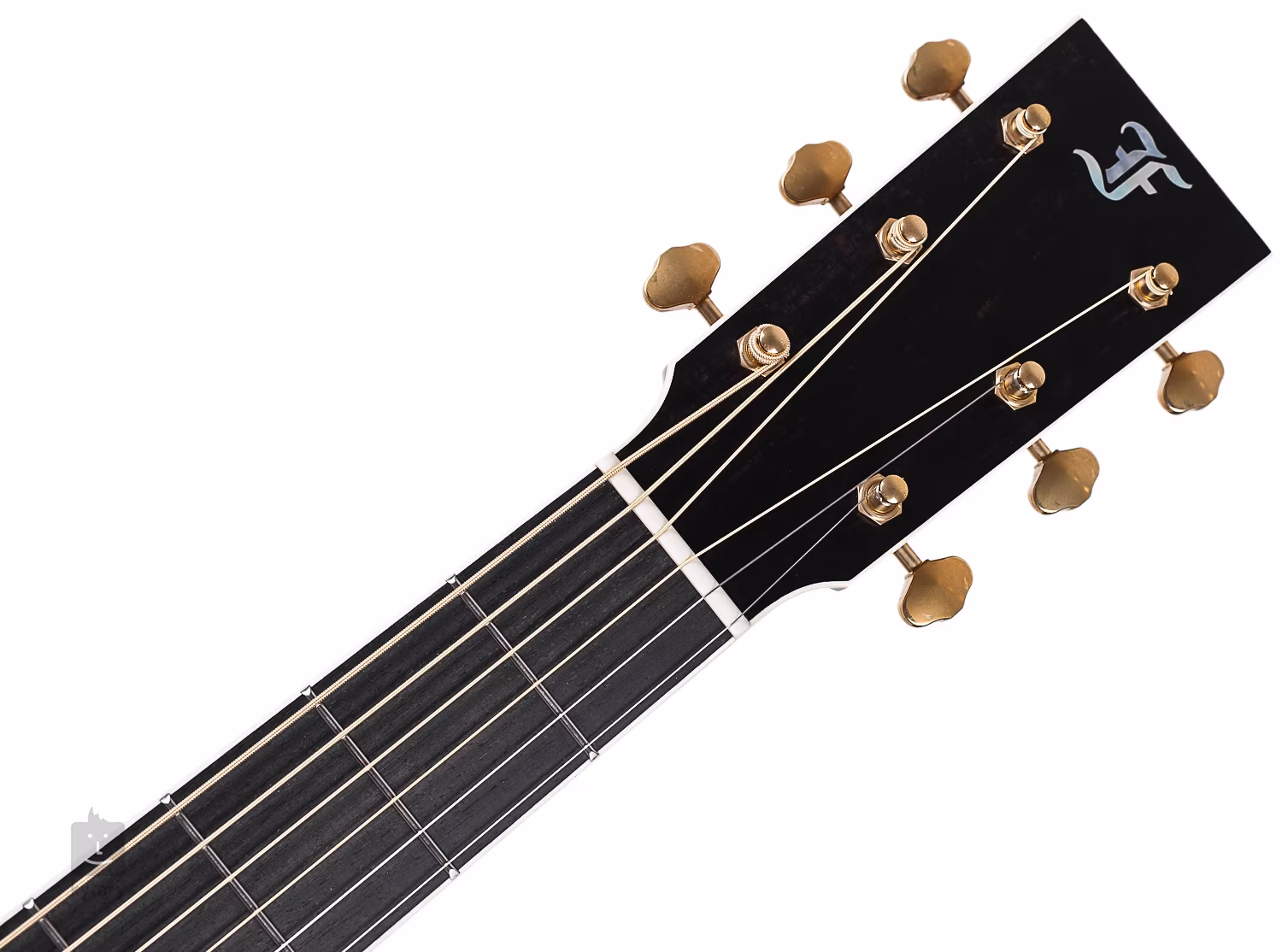 Die Vorderseite der Gitarre ist aus Sitka-Fichte in AAA-Qualität gefertigt, während Boden und Zargen aus indischem Palisander der gleichen Qualität bestehen. Die Full-Pore Vintage Korpuslackierung, ein spezieller Full-Pore-Lack, bietet einen hervorragenden Schutz für die Holzoberfläche, hebt die natürliche Textur hervor und verleiht der Gitarre ein angenehmes, patinaartiges Spielgefühl. Die individuelle Stimmung des Resonanzbodens bringt die akustischen Eigenschaften des Instruments auf das höchstmögliche Niveau.