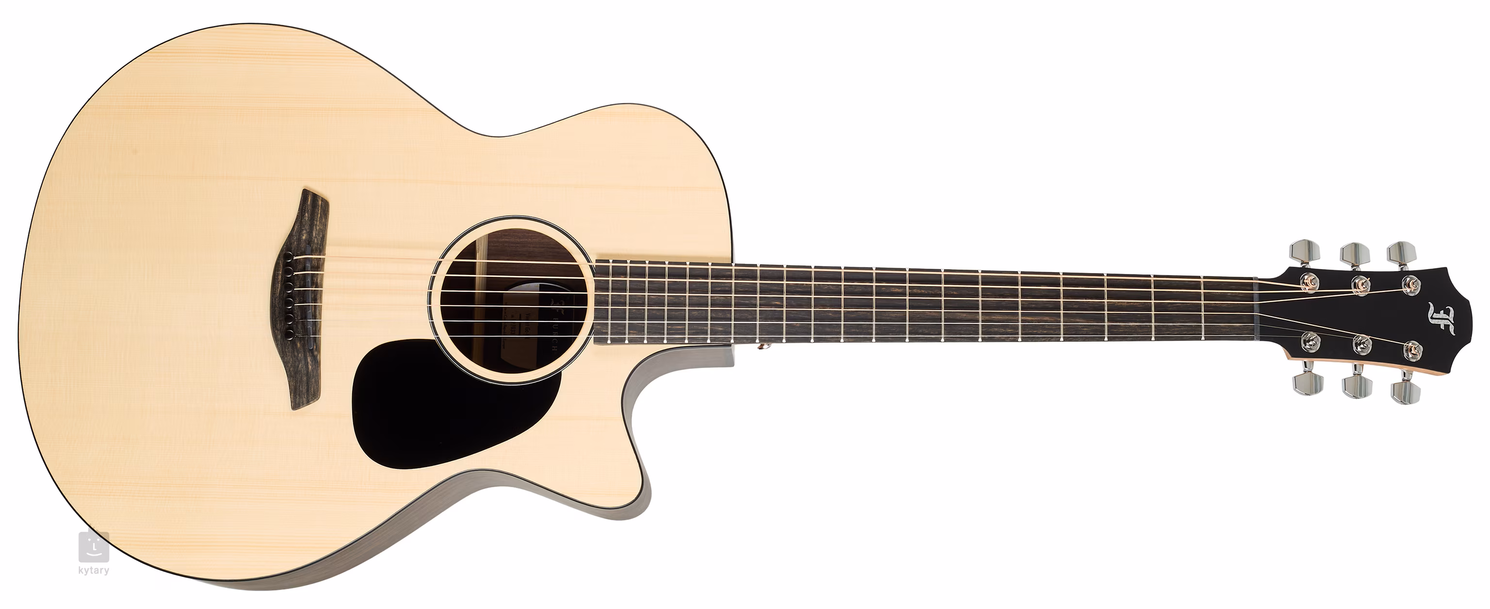 Die Vorderseite der Grand Auditorium Violet Gc-ER ist aus massiver nordamerikanischer Engelmann-Fichte gefertigt, während Boden und Zargen aus massivem indischem Palisander bestehen. Decke, Boden und Zargen sind mit einem Open Pore Finish versehen, das das Instrument schützt und die natürlichen Klangeigenschaften des Holzes fördert. Die hervorragenden akustischen Eigenschaften der Instrumente werden durch die spezielle Riffelung des Resonanzbodens noch verstärkt.
