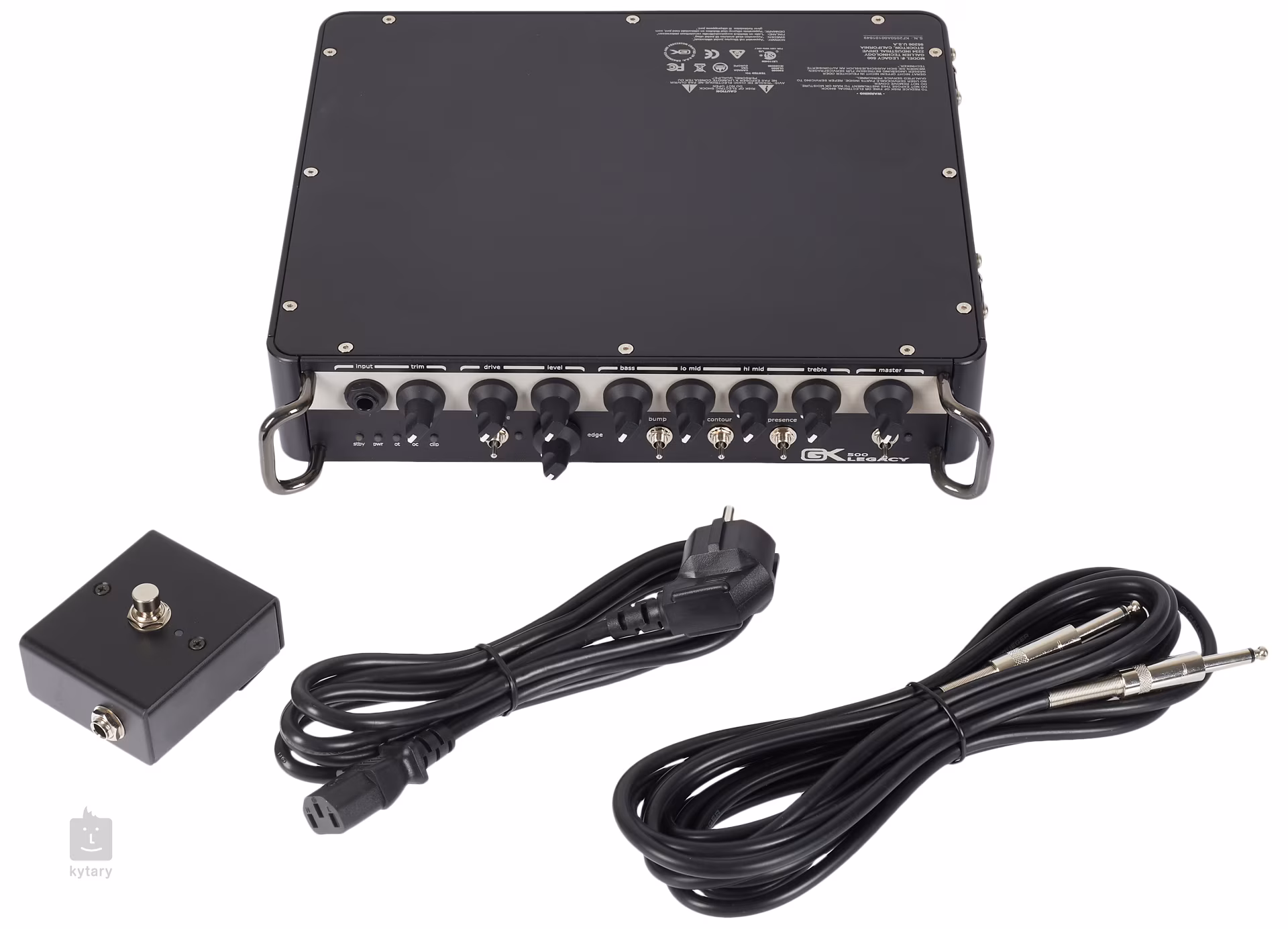 Zusammen mit einem Class-D-Verstärker bietet der Legacy 500 eine maximale Ausgangsleistung von bis zu 500 W. Das Bedienfeld auf der Vorderseite besteht aus einem Lautstärke- und Verzerrungsregler, einem Overdrive-Schalter oder einem Vierband-Equalizer zur Anpassung des Audiosignals. Außerdem gibt es Schalter für Bump/Contour/Presence-Audiofilter für einen möglichst flexiblen Einsatz des Verstärkers. Auf der Rückseite befinden sich ein dreistufiger Impedanzschalter, ein zweistufiger Pre/Post-Quellenschalter, Speakon-Buchsen für den Anschluss von Lautsprechern, eine Effektschleife, ein Fußschalter- und Tuner-Eingang sowie ein Kopfhörer- oder Musikgeräte-Eingang. Natürlich gibt es auch einen XLR-Ausgang für eine DI-Box mit Lift/Ground-Schalter. Der Verstärker verfügt über zwei robuste Griffe für den bequemen Transport und die einfache Handhabung auf der Bühne.