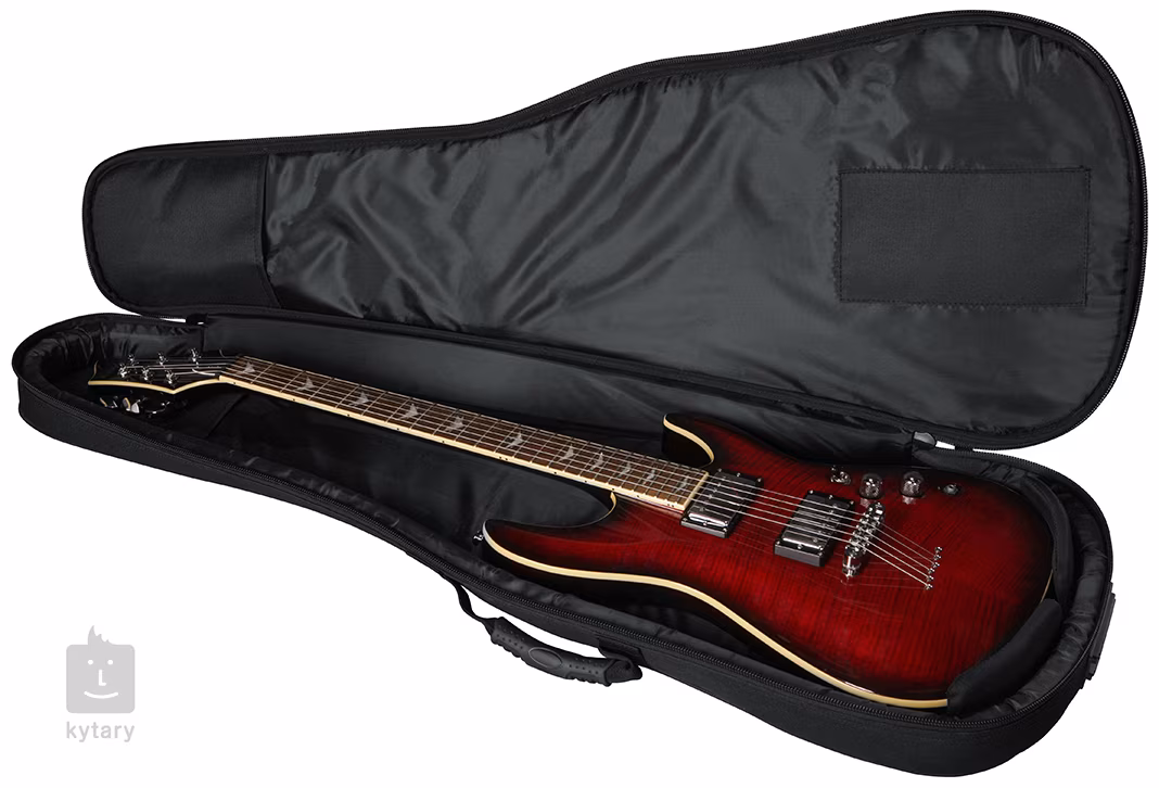 Die Tasche ist aus strapazierfähigem Nylon gefertigt und an allen Seiten mit einer 20 mm dicken GFLEX-Schaumstoffpolsterung verstärkt, die maximalen Schutz vor Stößen und mechanischen Beschädigungen bietet. Die Innenkonstruktion verfügt über eine Verstärkung im Bereich des Kopfes und des Stegs, die Verschleiß an diesen empfindlichen Stellen verhindert. Zur einfachen Organisation von Kleinzubehör steht eine Fronttasche zur Verfügung, in der Saiten, Stimmgerät oder andere Accessoires Platz finden, und auch ein einzigartiger Pick-Clip am Reißverschlusskopf zum Befestigen eines Notfall-Plektrums fehlt nicht.