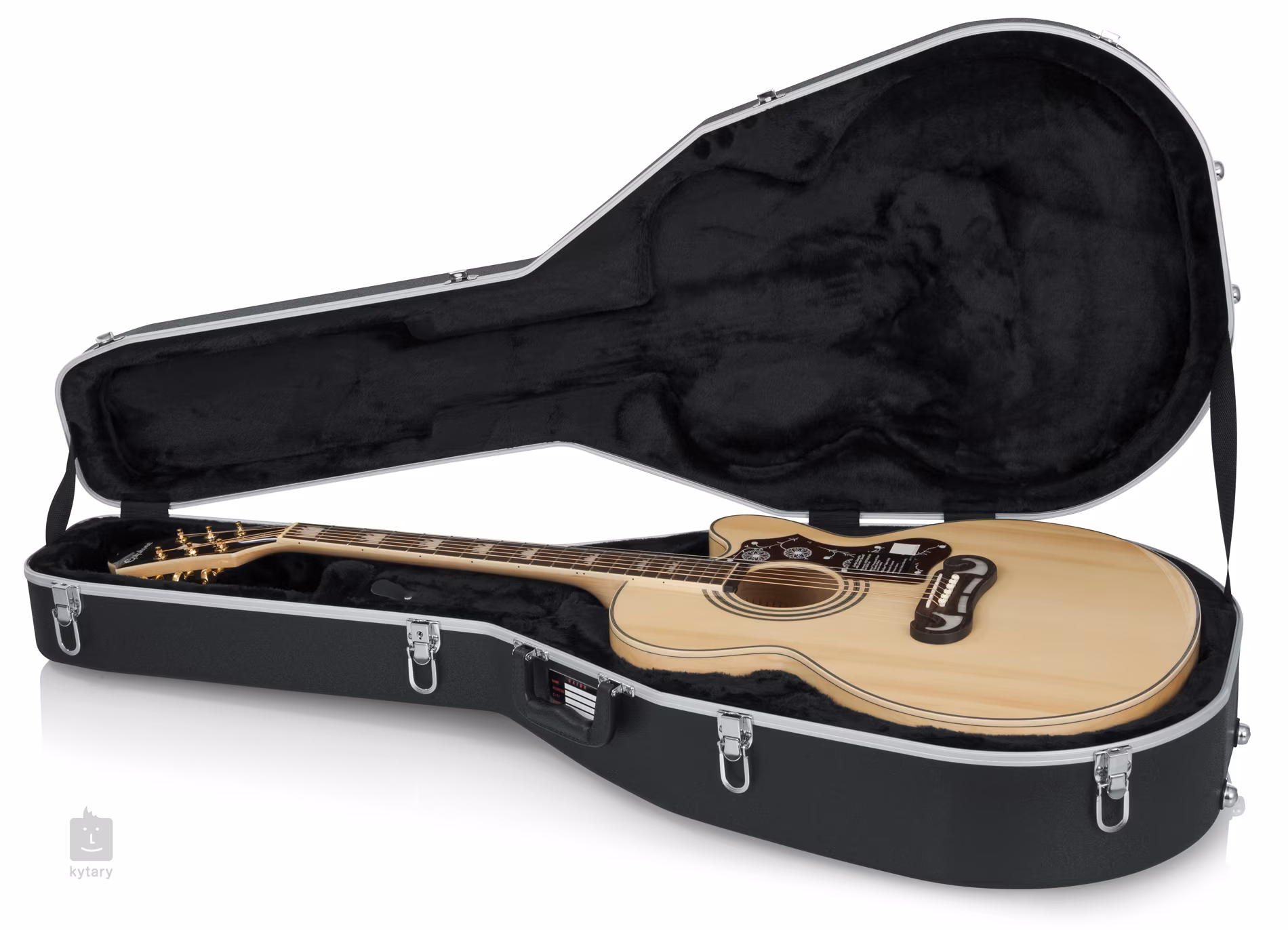 Der Gator GC-Jumbo-Koffer ist für Jumbo-Akustikgitarren geeignet und wurde für den maximalen Schutz Ihres Instruments entwickelt. Er hat eine harte Außenschale aus haltbarem ABS-Kunststoff, die eine hohe Stoßfestigkeit bietet. Innen ist er mit Schaumstoff gepolstert und mit einem Plüschbezug versehen, um Ihr Instrument vor Kratzern zu schützen. Darüber hinaus bietet er ein geräumiges Staufach für Zubehör. Der Koffer ist mit praktischen Griffen für den einfachen Transport und Sicherheitsverschlüssen ausgestattet, die ein versehentliches Öffnen verhindern.