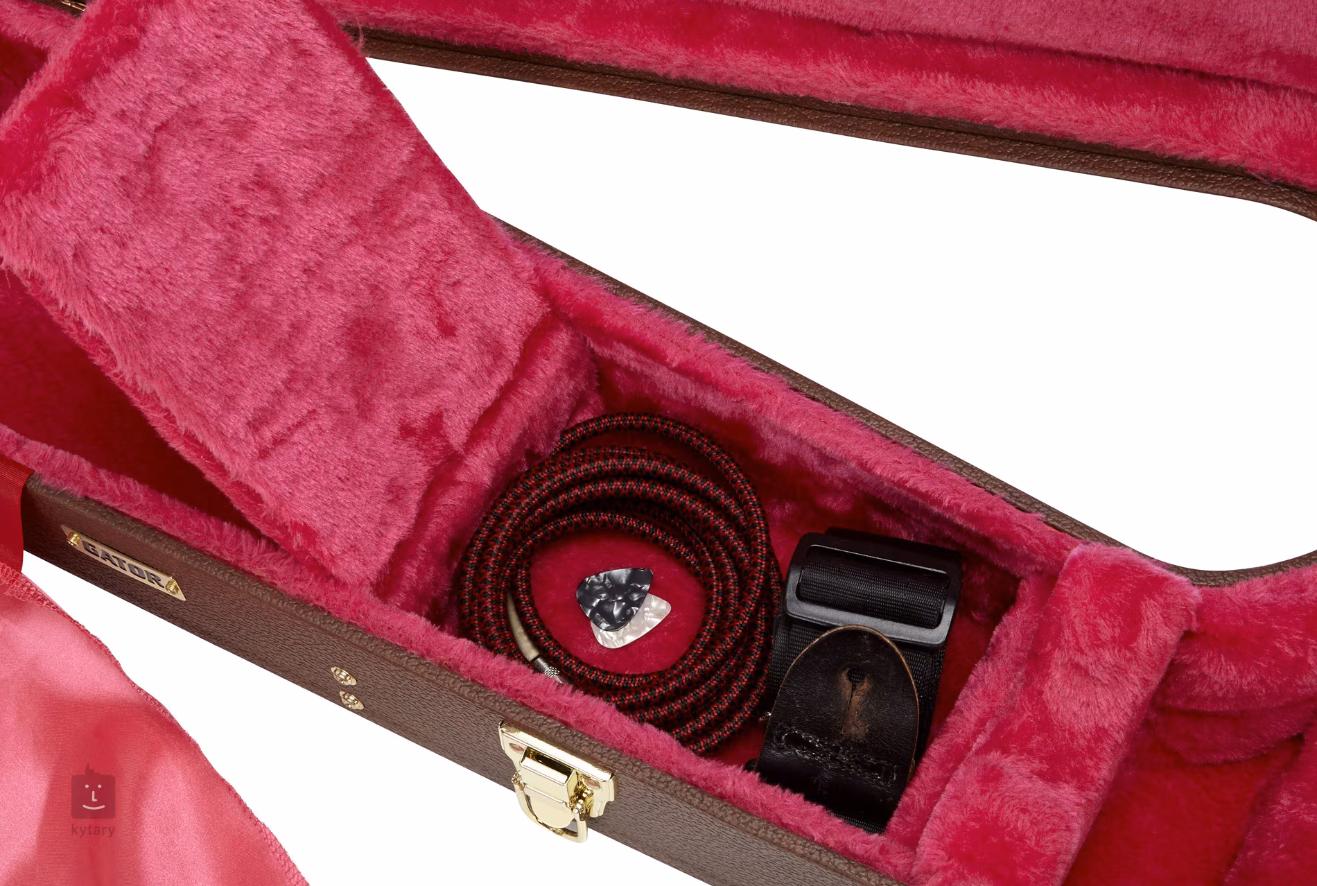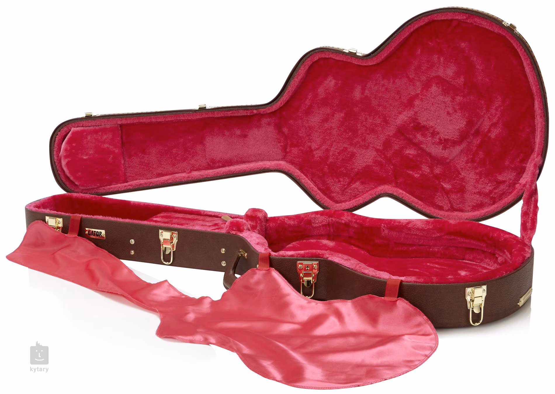 Der luxuriöse Koffer Gator GW-335-BROWN bietet eleganten und zuverlässigen Schutz für Ihre halbakustische Gitarre in 335er-Form. Er kombiniert klassisches Aussehen mit moderner Widerstandsfähigkeit und bietet eine erstklassige Verarbeitung, die auch den Anforderungen anspruchsvoller Musiker gerecht wird. Die Außenseite des Koffers ist mit einem braunen Tolex-Bezug mit goldenen Beschlägen verziert, während das Innere mit einem rosa Mikroplüschbezug ausgekleidet ist.