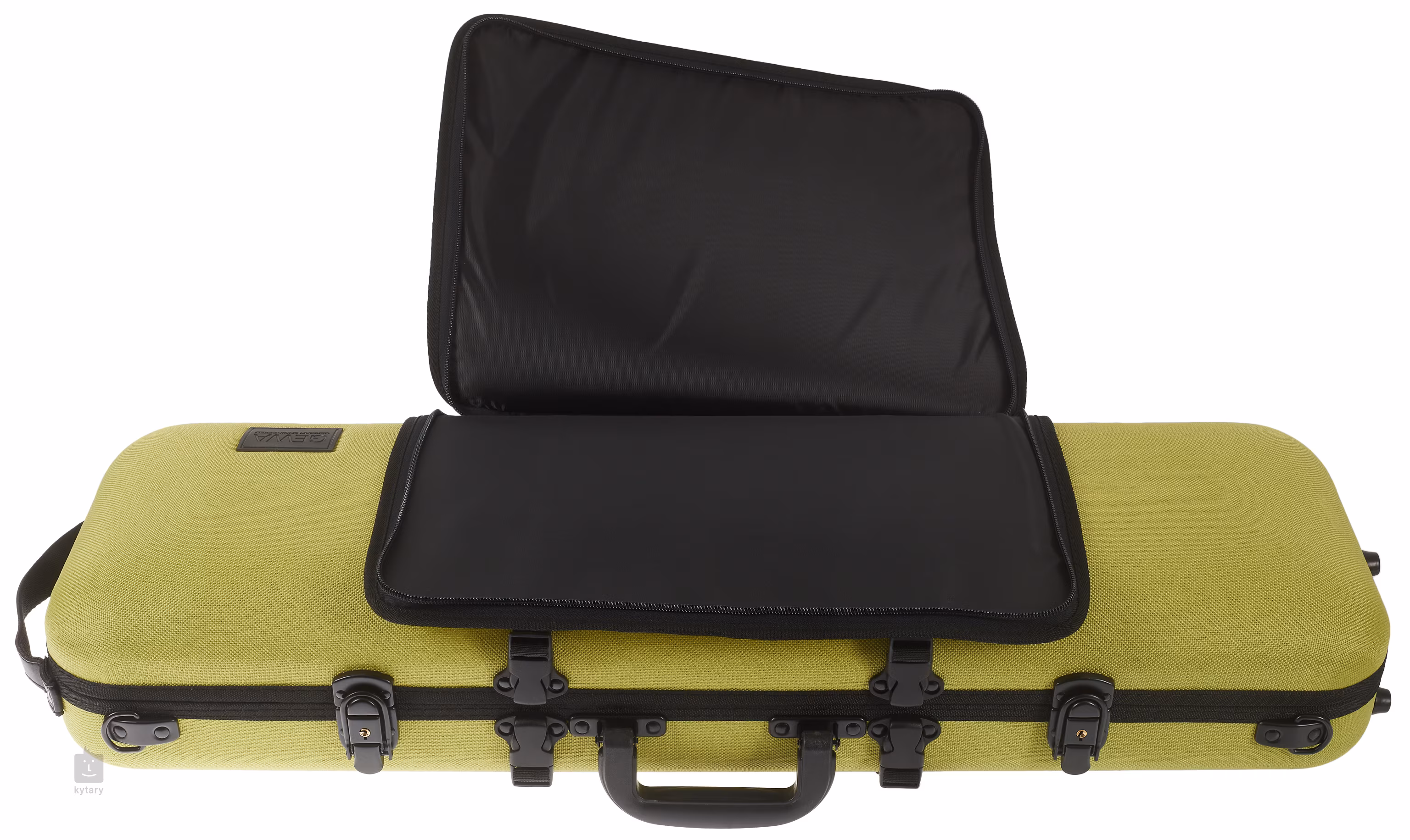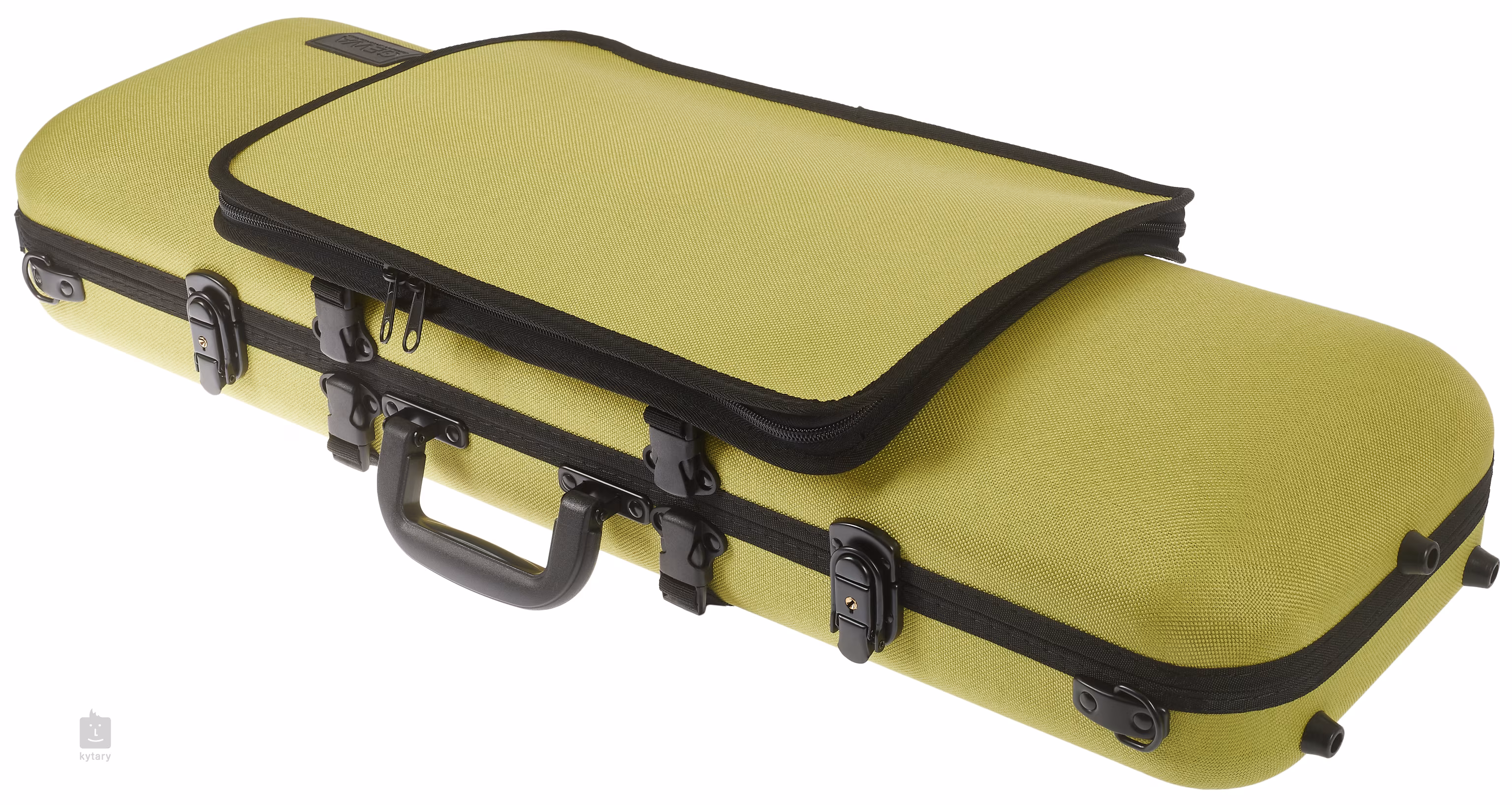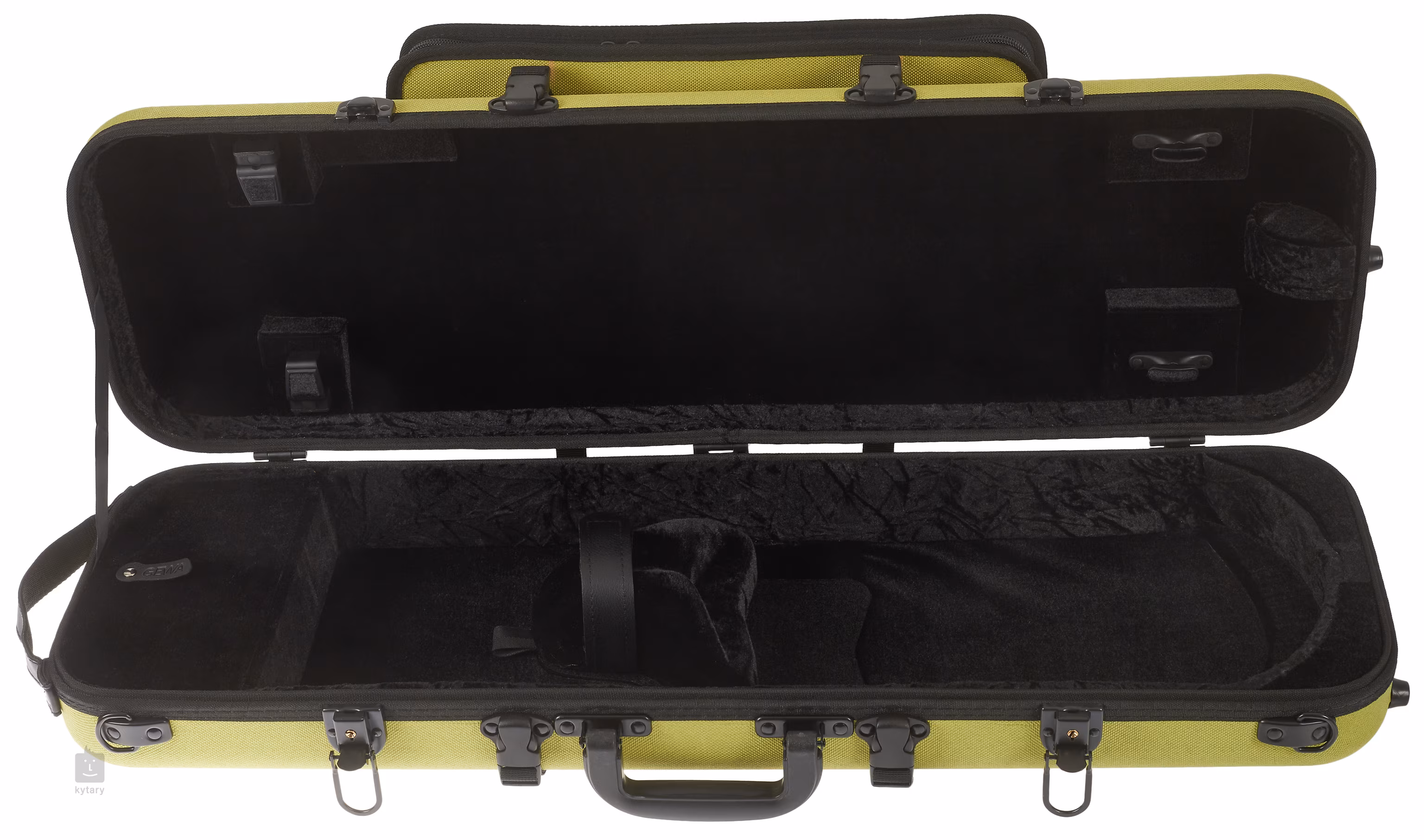 Gewa bringt einen Koffer mit traditionellem Aussehen auf den Markt, der jedoch aus einem nicht-traditionellen, erneuerbaren Material - Bioflachs - hergestellt wird. Er bietet dank eines verschiebbaren Halshalters Platz für praktisch alle Geigentypen. Außerdem bietet er eine schwenkbare Befestigung für zwei Bögen.
