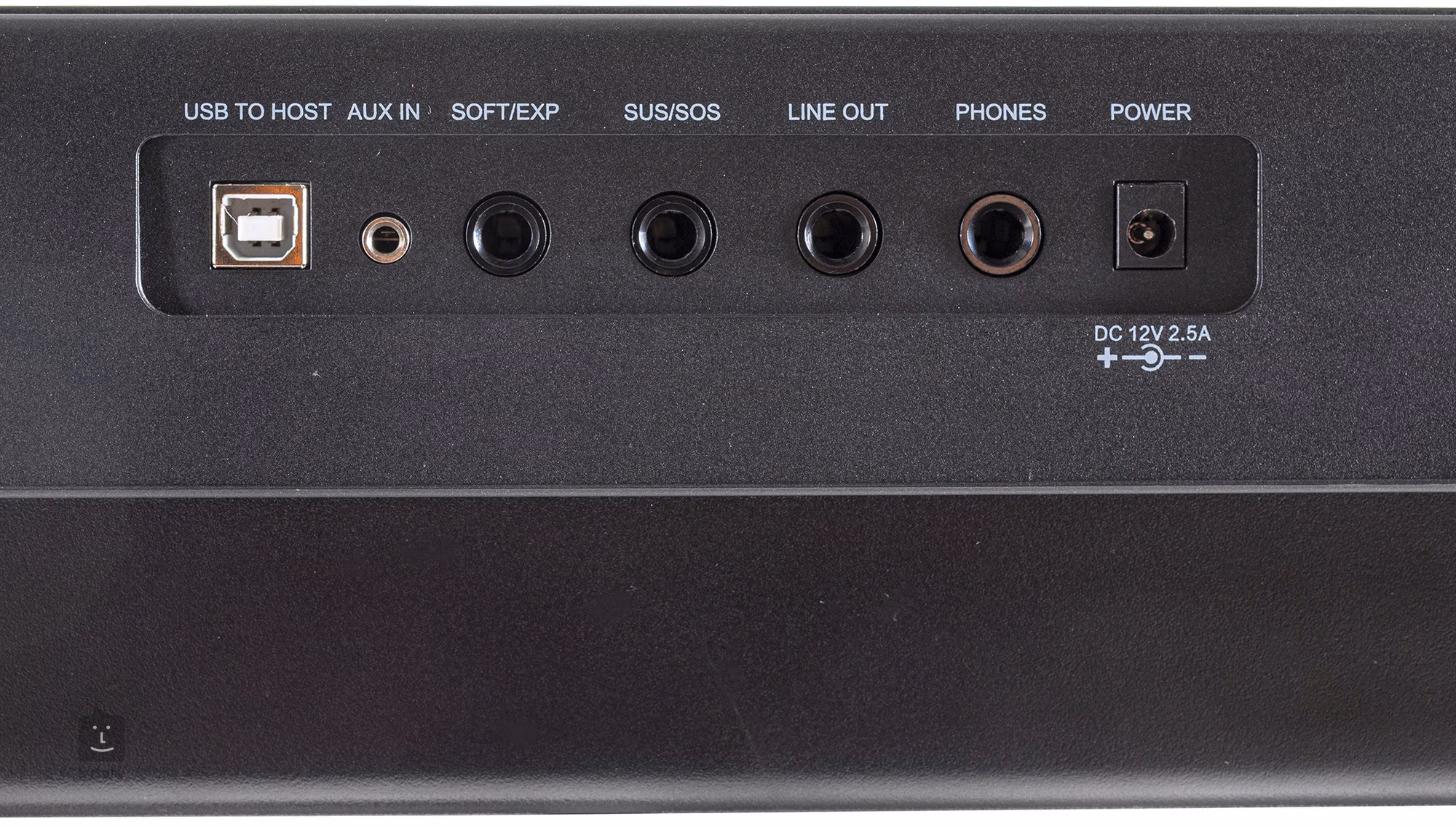 1x USB to Host, 1x 3,5 Aux In, 1x 6,3mm Soft/Expression pedal, 1x 6,3mm Sustain, 1x 6,3mm Headphones