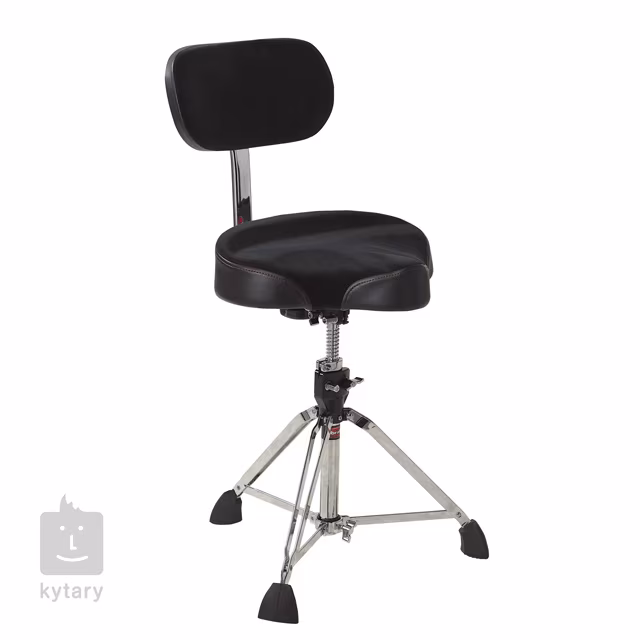 Dieser Trommelsitz mit extra großem Motorradsitz ermöglicht eine Höhenverstellbarkeit von 51 bis 71 Zoll. Das Gestell ist ein klassisches, stabiles Dreibein, der Sitz ist ehrlich gepolstert und mit Vinyl und Samt bezogen. Dieses Modell ist außerdem mit einer verstellbaren Rückenlehne ausgestattet.