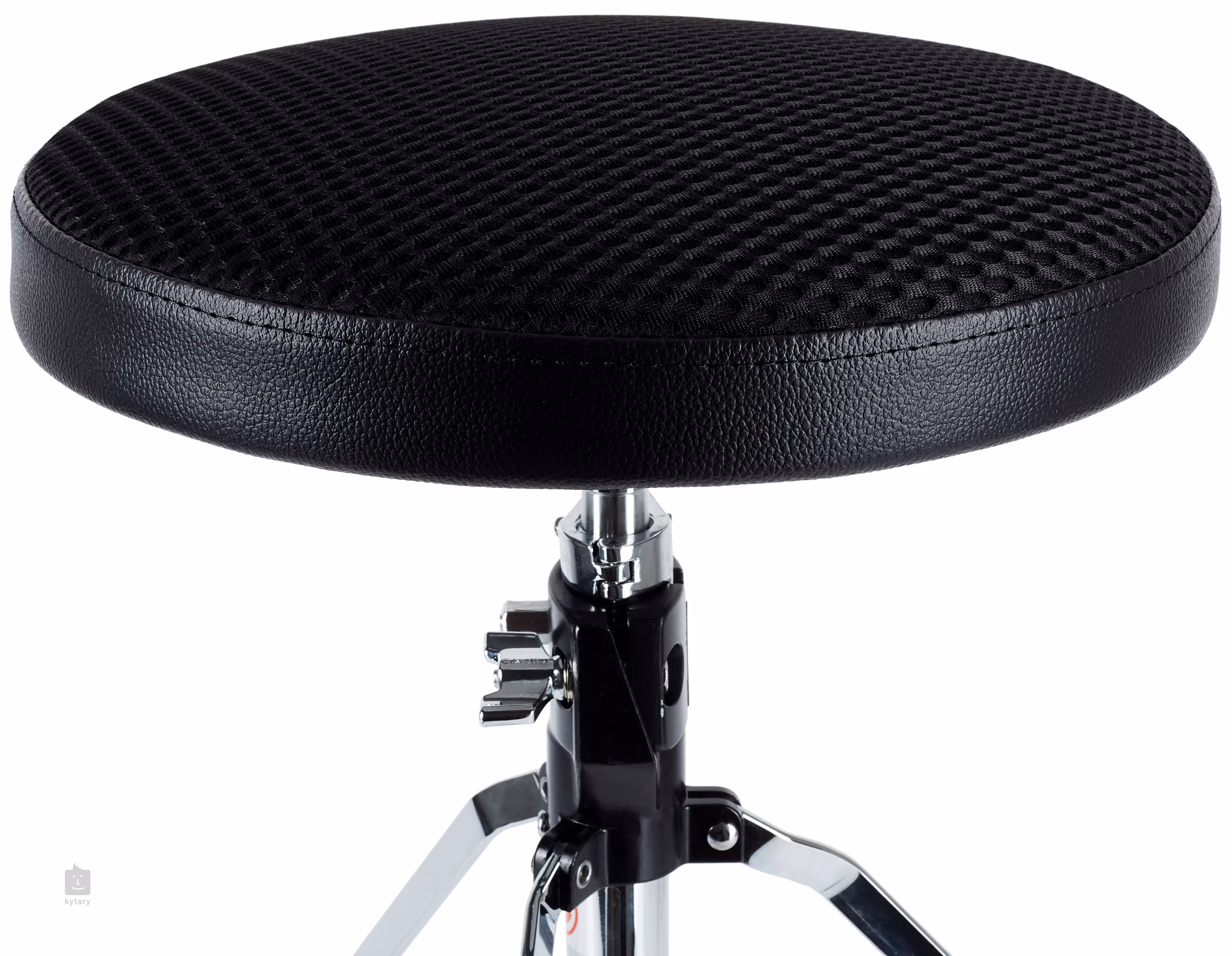 Dieser Trommelstuhl aus der Airtech-Reihe ist sehr kompakt, kompakt und leicht, aber dennoch sehr bequem und stabil. Der Sitz ist mit Memory Foam gepolstert und hat einen atmungsaktiven Netzbezug. Die Höhe kann über eine Spirale mit Memory Lock und Super Lock Grip Technologie eingestellt werden.