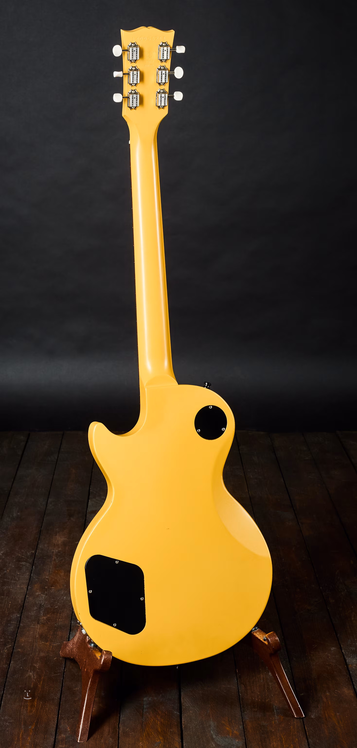 Der gelbe Nitrolack altert auf natürliche Weise, und auf der Decke ist unter den Saiten eine beginnende Patina zu sehen. Ansonsten befindet sich die Gitarre in absolut perfektem Zustand.