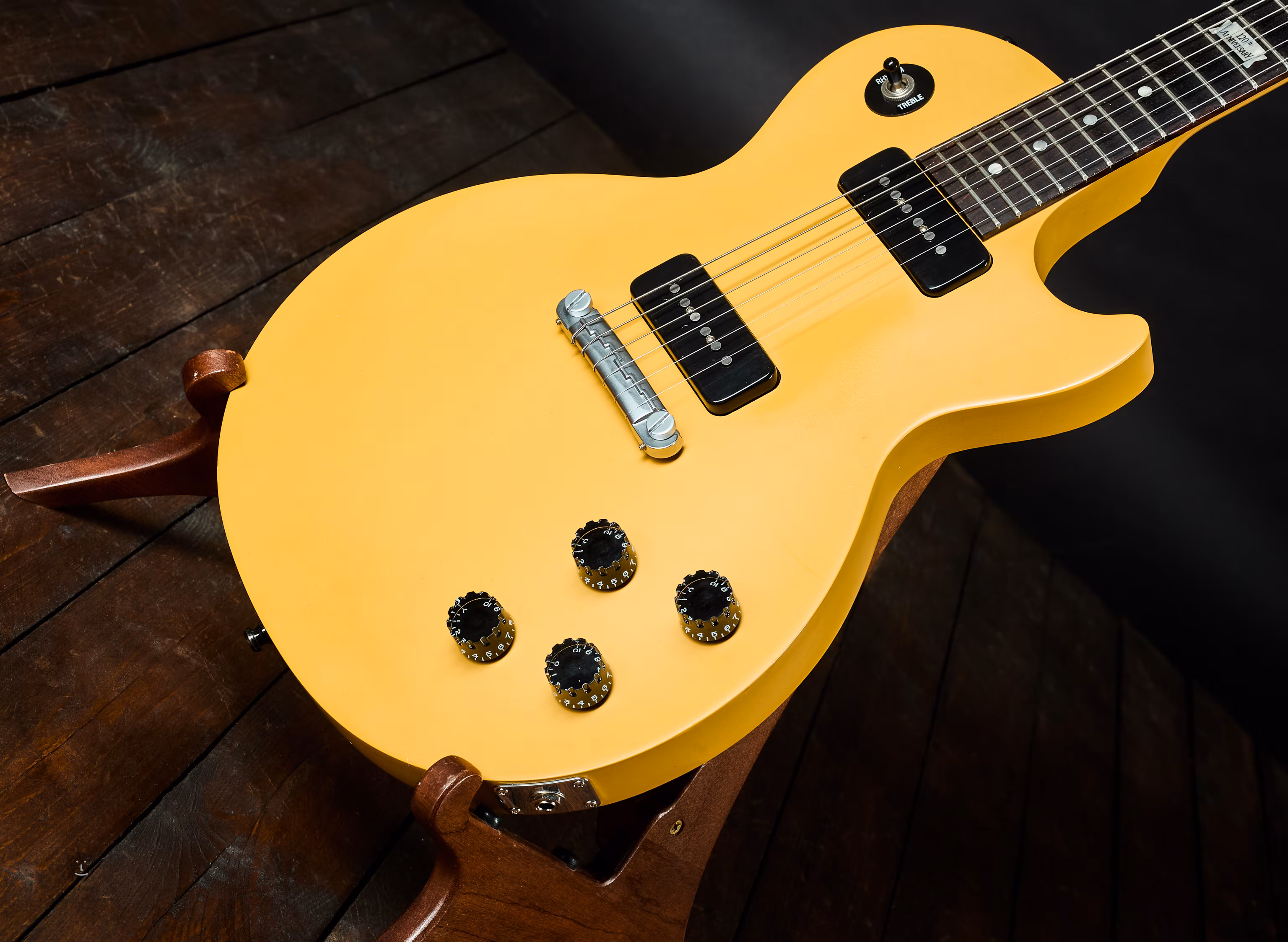 Sonderausgabe mit Jubiläums-Inlay am 12. Bund. Das Instrument wurde ausschließlich im Modelljahr 2014 hergestellt, als sich die Gründung der Marke Gibson zum 120. Mal jährte.
