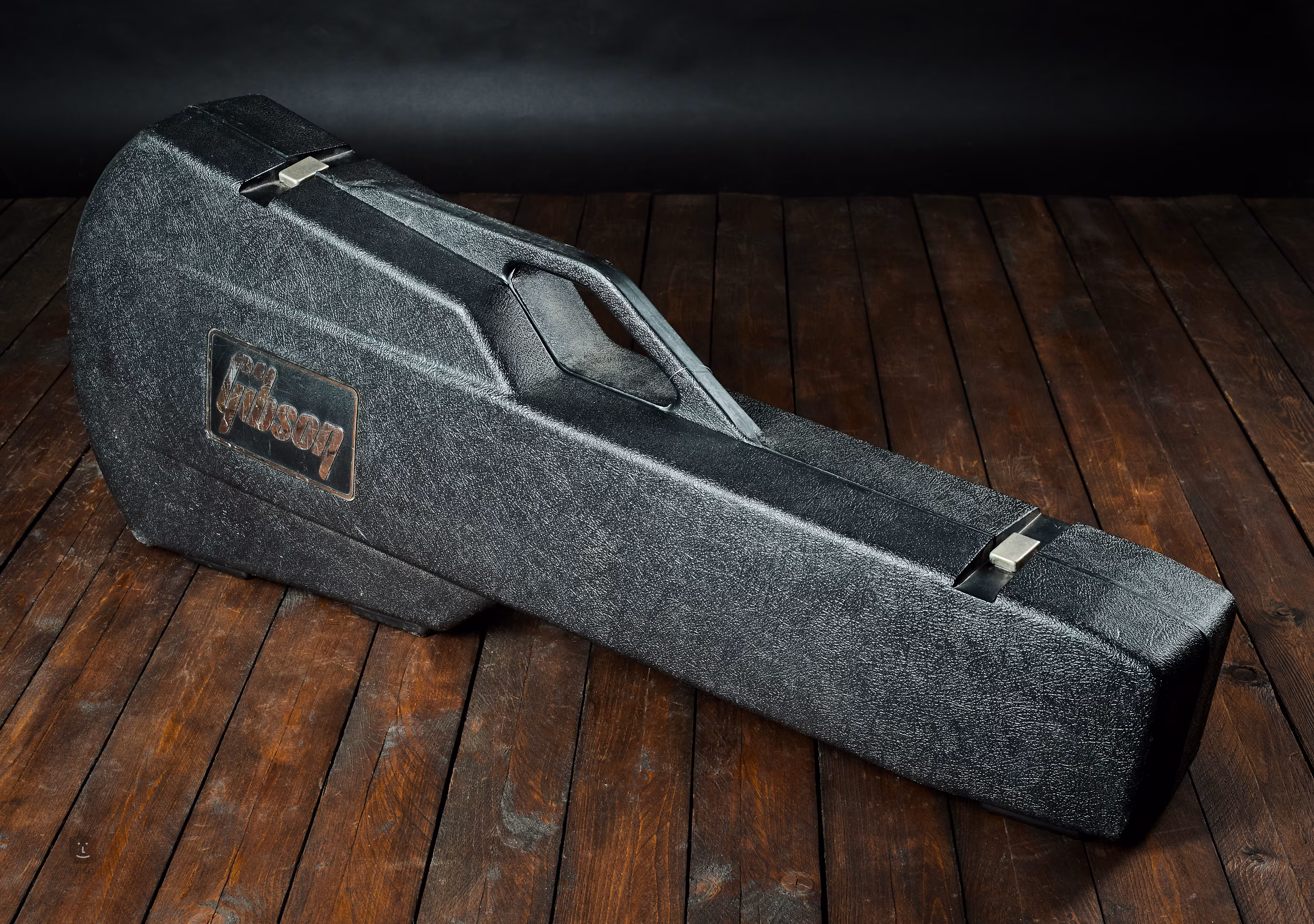 Zum Verkauf gehört auch der originale, für Gibson und die 80er Jahre typische „Chainsaw”-Koffer für Sammler. Es handelt sich natürlich um gebrauchte Ware – BAZAROVÝ-Mehrwertsteuerregelung.