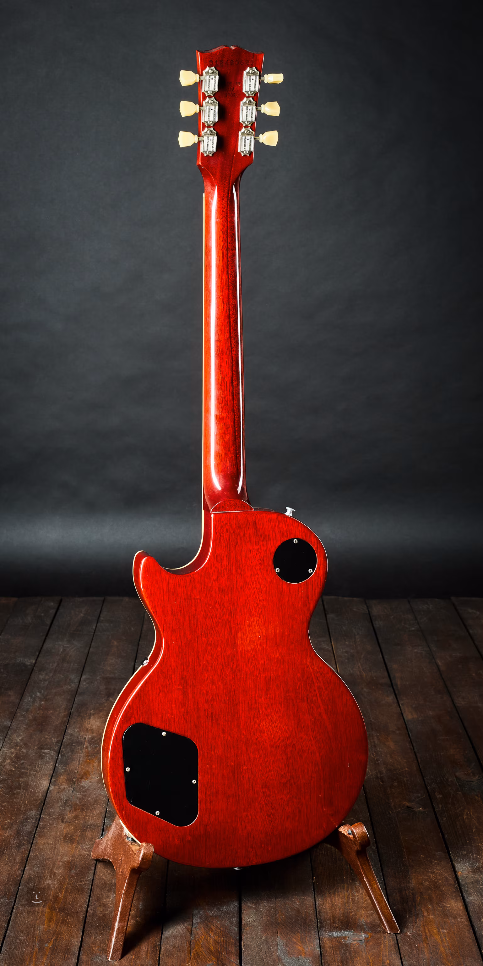 Ein Instrument aus dem Jahr 2009 mit einer gemaserten Ahorn-Decke und einem Mahagoni-Korpus ohne große Hohlräume, lediglich mit „Traditional Weight Relief“ (sogenannten „Swiss-Cheese“-Löchern).