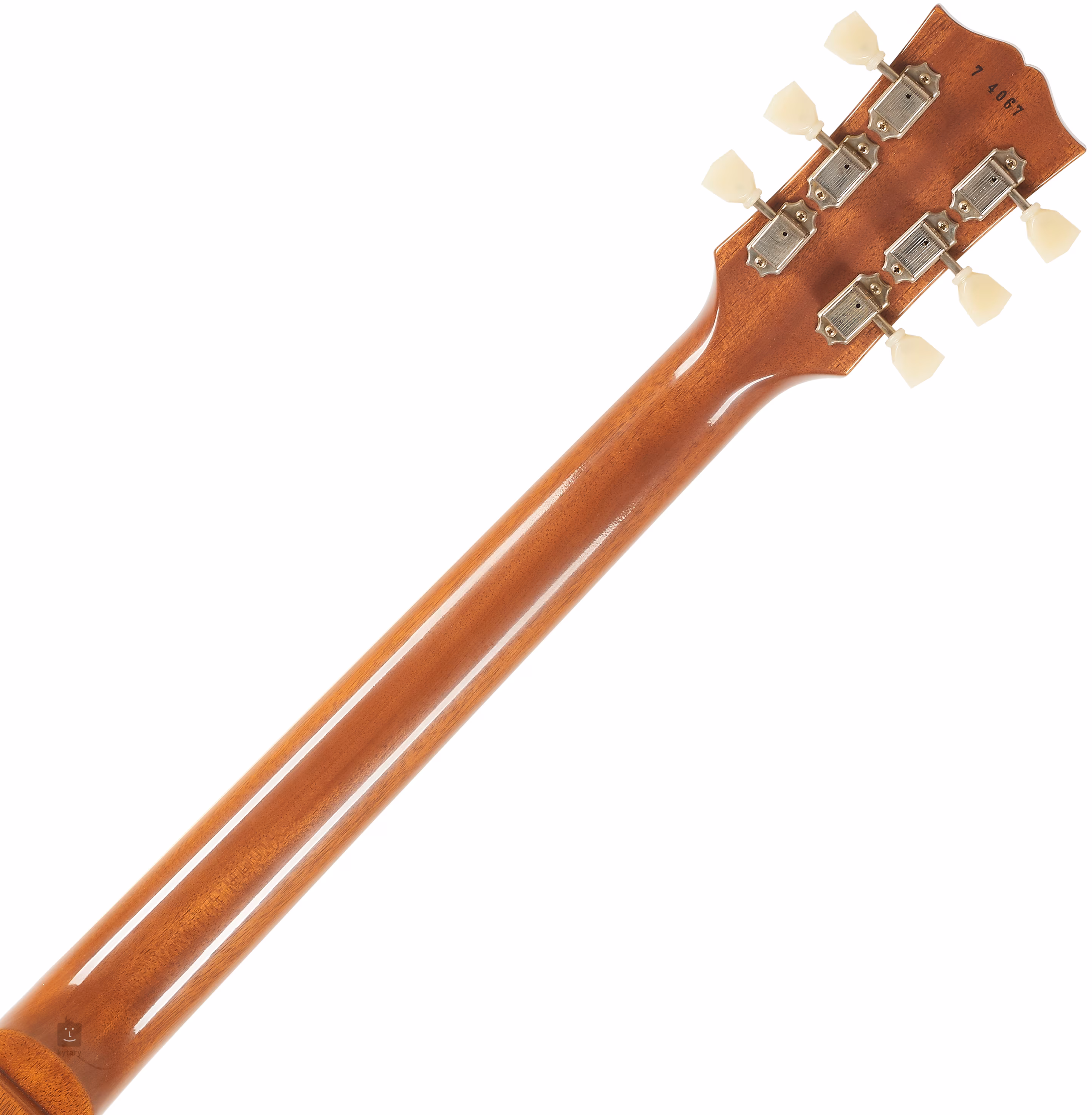 Der massive Mahagonikorpus ist mit einer zweiteiligen, glatten Ahorndecke und einer Double Gold Lackierung versehen. Eine spezielle VOS-Lackierung (Vintage Original Specs) verleiht der Gitarre das authentische Aussehen und Spielgefühl der Originale. Ein Palisandergriffbrett mit zweiundzwanzig Bünden (Historic Gibson Narrow/Tall) ist auf den Mahagonihals geleimt. Positionsblöcke (Aged Cellulose Nitrate Trapezoid) erleichtern die Orientierung auf dem Griffbrett.