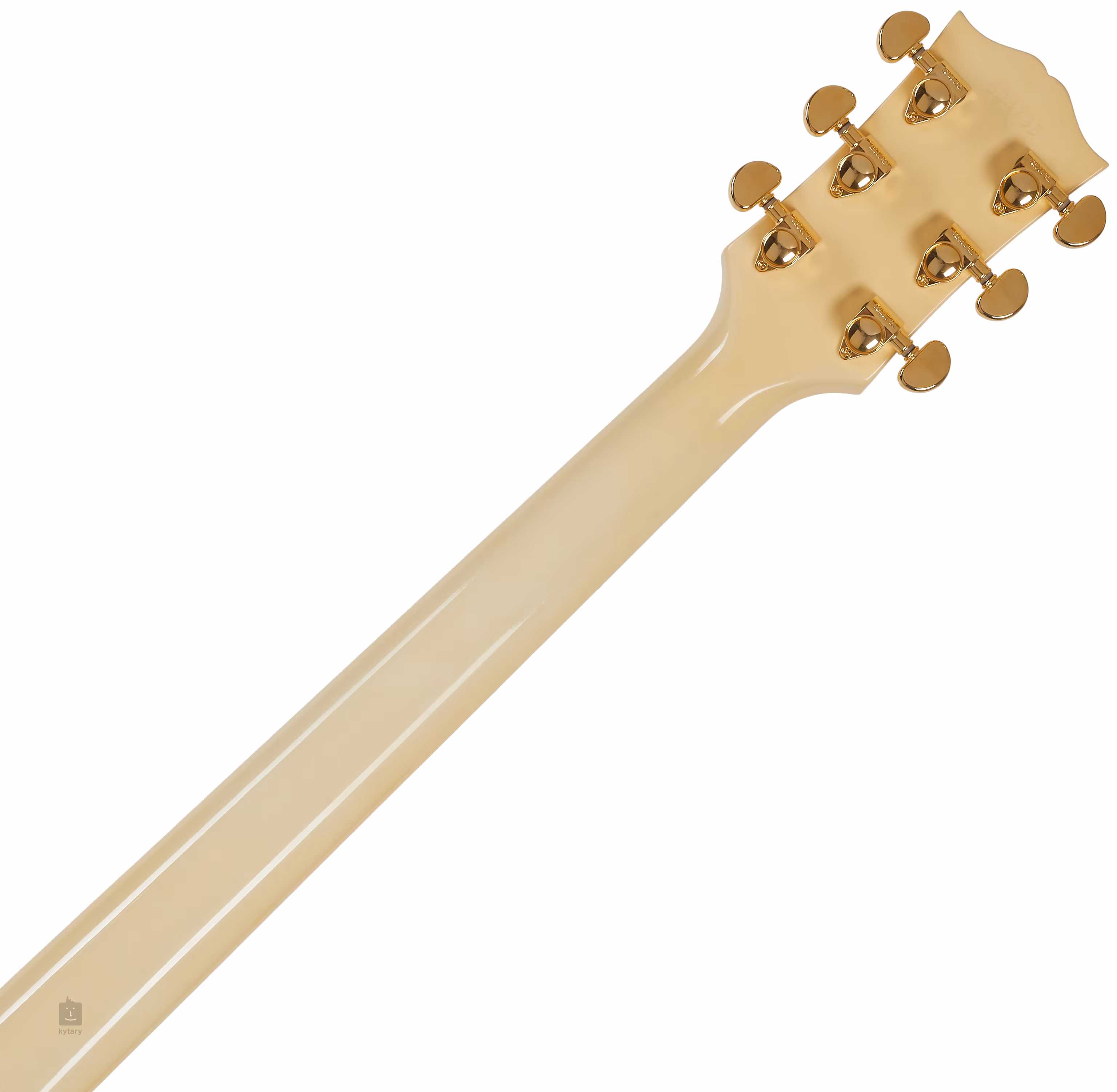Der aus einem einzigen Stück Mahagoni geschnitzte Korpus ist in Classic White lackiert. Eine spezielle VOS-Lackierung (Vintage Original Specs) verleiht der Gitarre das authentische Aussehen und Spielgefühl der Originale. Auf den Mahagoni-Hals ist ein Ebenholz-Griffbrett mit zweiundzwanzig Bünden (Authentic Medium-Jumbo) geleimt. Die Orientierung auf der Griffbrettoberfläche wird durch Positionsblöcke aus Perlmutt (Mother of Pearl) erleichtert.