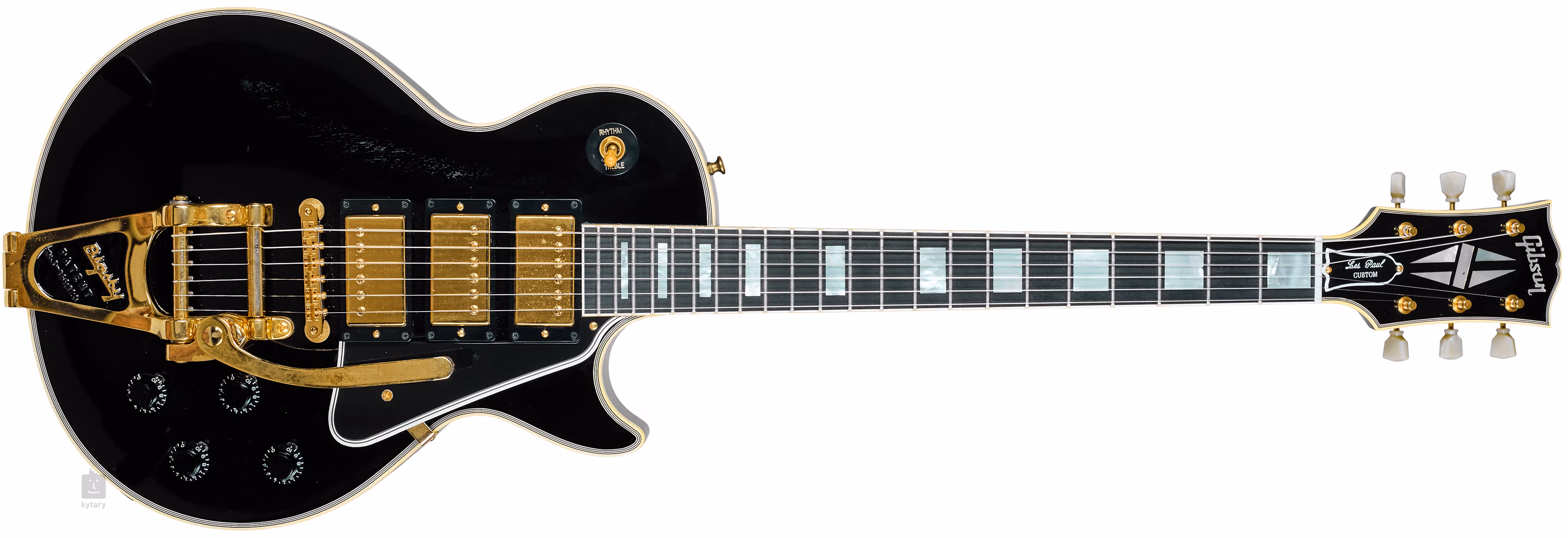 Nur wenige E-Gitarren sind so klassisch und legendär wie eine Gibson Les Paul. Diese 1957 Les Paul Custom Reissue 3-Pickup Bigsby VOS Ebony ist das Topmodell, denn sie kombiniert Vibrato und einen dritten, mittleren Pickup. Der Korpus ist aus einem Stück Mahagoni gefertigt und in tiefem Ebony lackiert. Das VOS-Finish (Vintage Original Specs) sorgt für authentischen Look und das „Feel“ der Originale. Zum Mahagonihals ist ein massives Ebenholzgriffbrett mit 22 Bünden (Historic Medium-Jumbo) verleimt. Für den Sound sorgen drei Custombucker Alnico III Humbucker.