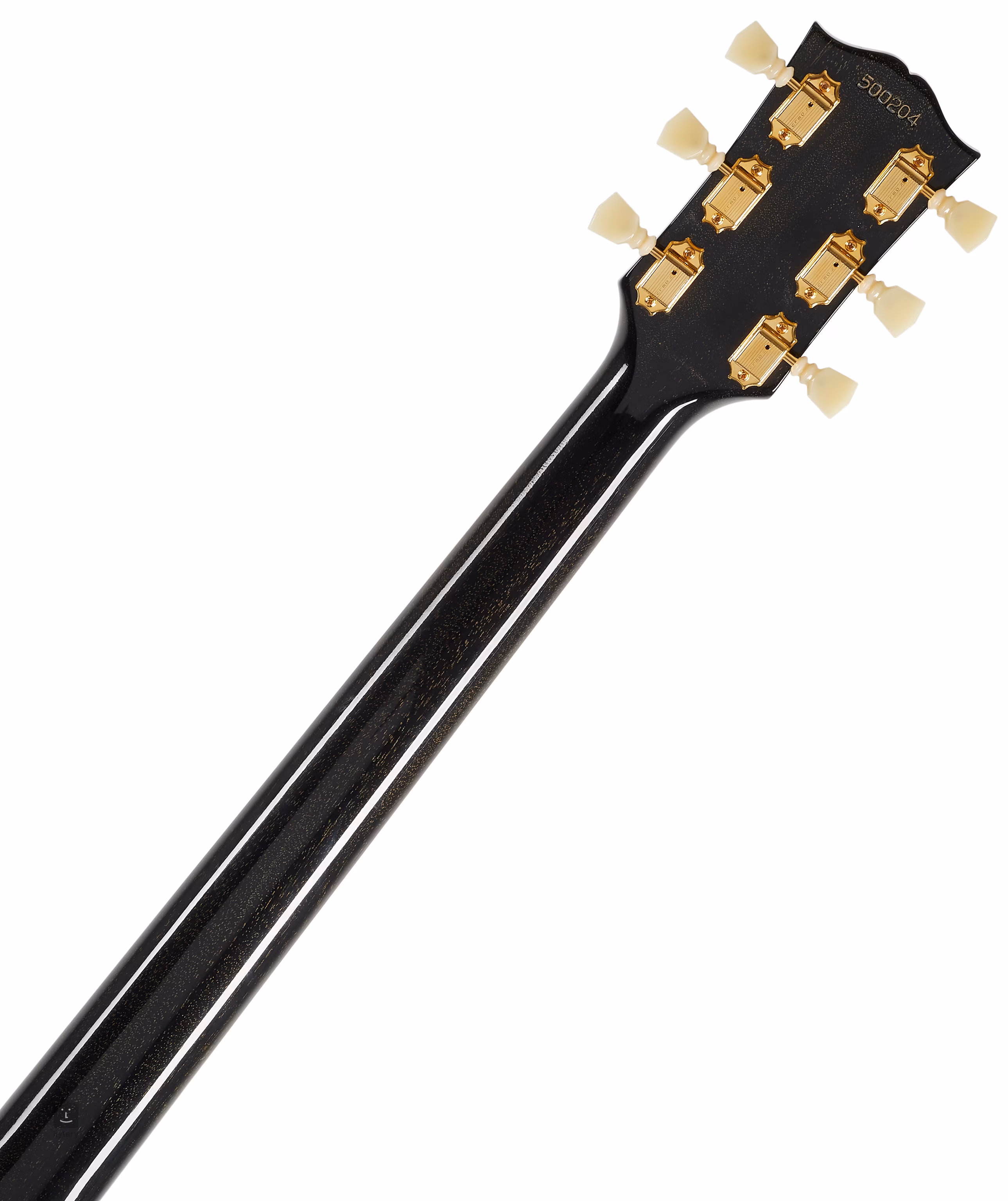 Der aus einem einzigen Stück Mahagoni geschnitzte Korpus ist mit einer glänzenden Lackierung und einer Black Gold Farbgebung versehen. Auf den Mahagoni-Hals ist ein Palisander-Griffbrett mit zweiundzwanzig Bünden geleimt. Die Orientierung auf dem Griffbrett wird durch Positionsblöcke (Trapezoid) erleichtert.
