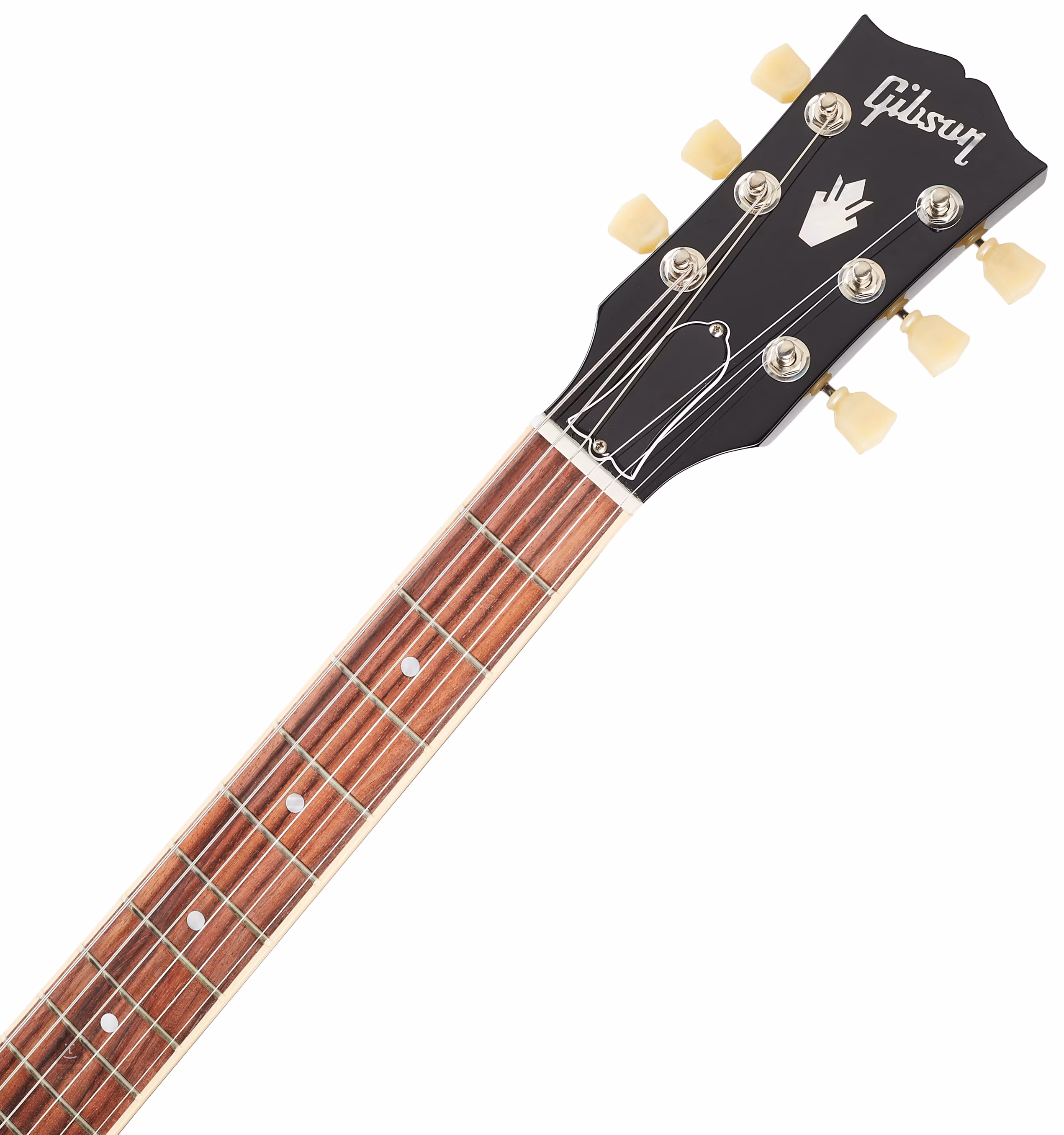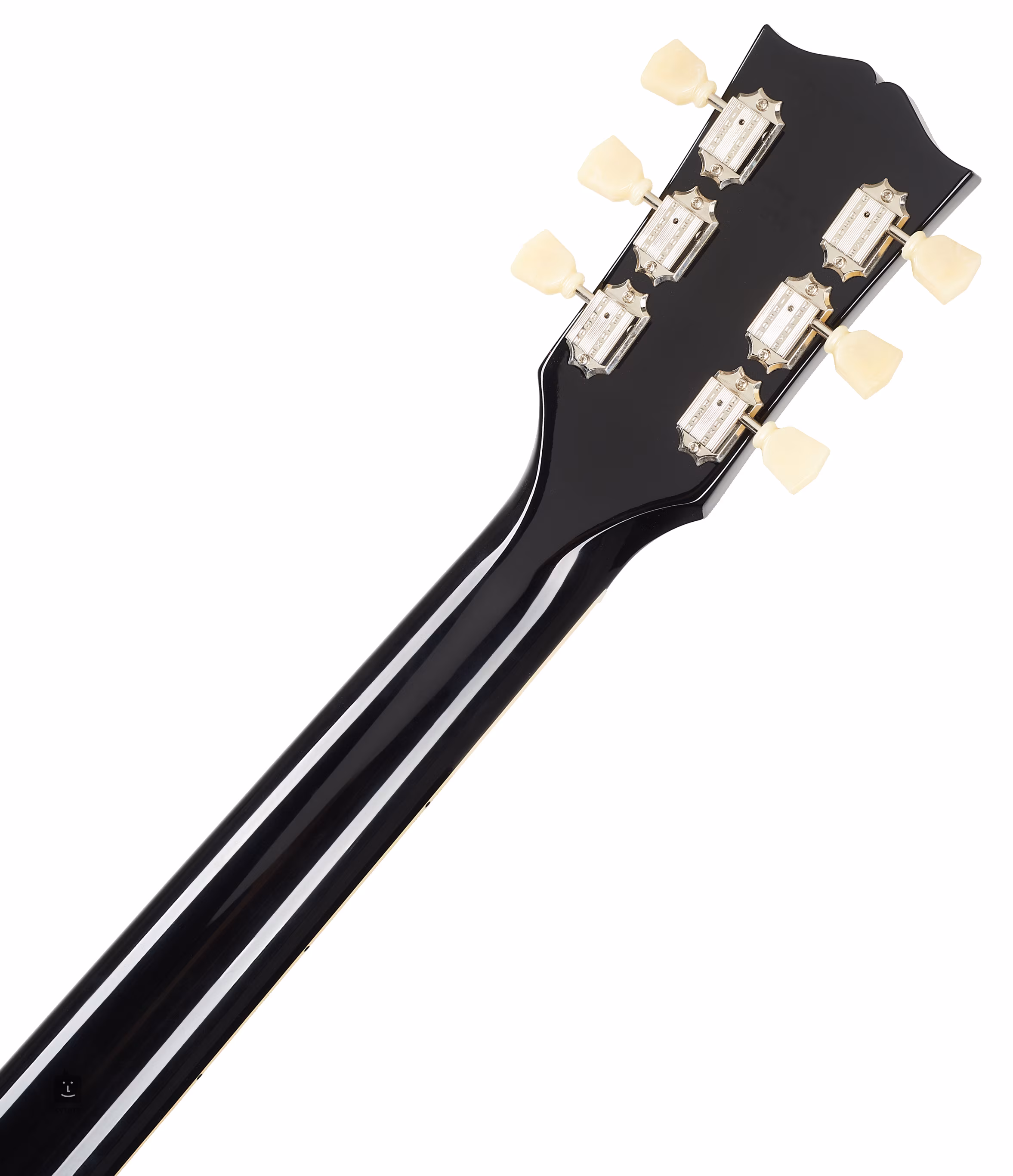 Stimmstabilität und gutes Sustain werden durch die GraphTech Zero-Fret-Saitenbefestigung in der Vintage Deluxe-Mechanik mit Keystone-Wirbeln und die ABR-1 TOM-Brücke in den Saitenreitern gewährleistet. Der stilvolle Eindruck wird durch das schwarze, fünflagige Schlagbrett, die Nickel-Hardware, das cremefarbene Binding und das Logo auf der Kopfplatte noch unterstrichen.