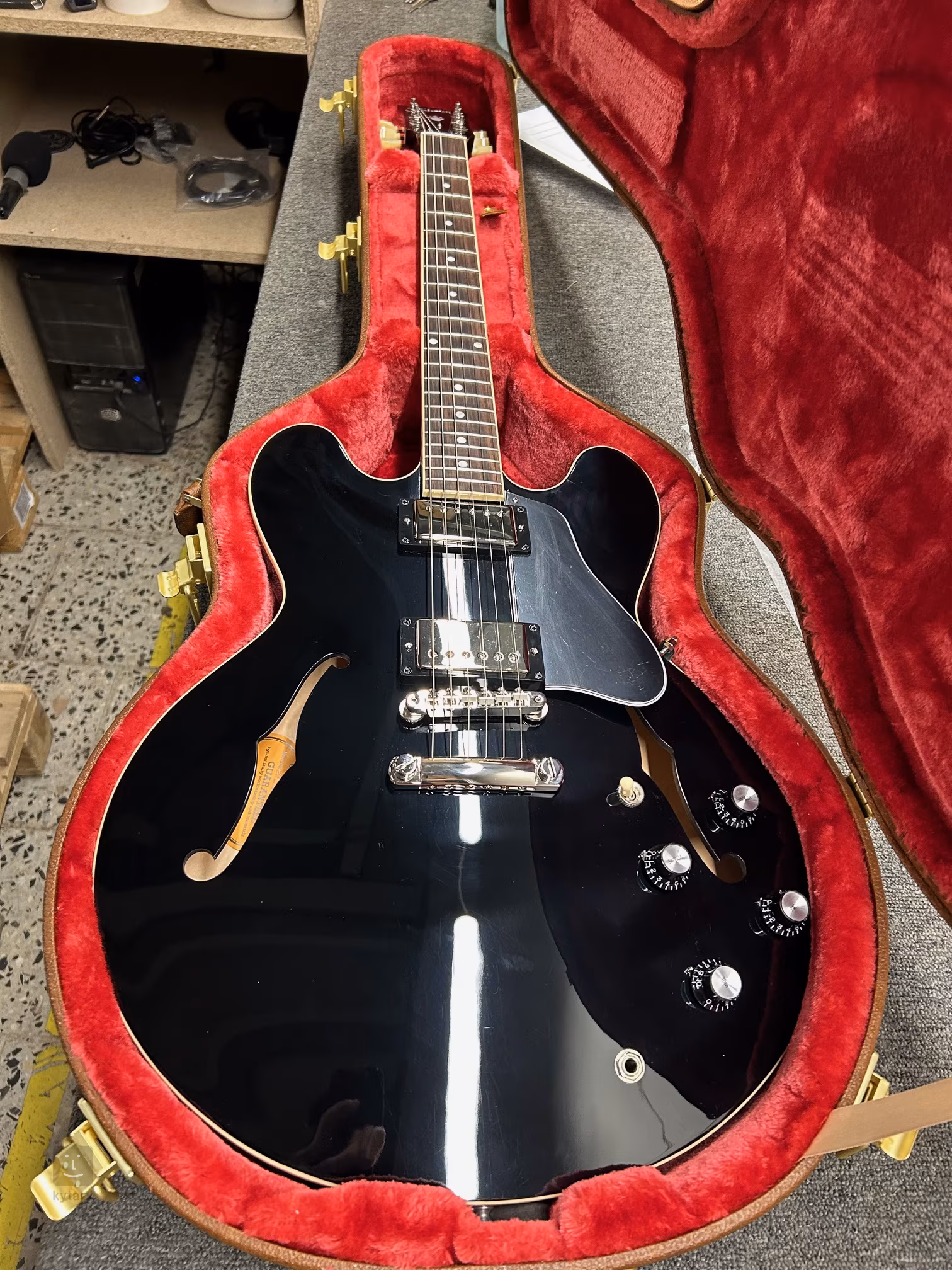 Der Korpus dieser Gitarre besteht aus laminiertem Ahorn und Pappel (zwei Schichten Ahorn und eine mittlere Schicht Pappel), ergänzt durch einen massiven Mittelblock aus Ahorn. Die klanglichen Qualitäten und das große Sustain des Instruments werden durch Fichtenzargen und eine dünne Lackierung in Form eines Nitrozelluloselacks unterstützt, der das Holz atmen lässt. Auf den handgeformten Mahagonihals ist ein Palisandergriffbrett mit zweiundzwanzig Medium-Jumbo-Bünden geklebt. Die Orientierung auf der Oberfläche wird durch Positionspunkte aus imitiertem Perlmutt erleichtert, die zusammen mit dem abgerundeten "C"-Halsprofil authentische Elemente der frühen ES-335-Modelle bieten.