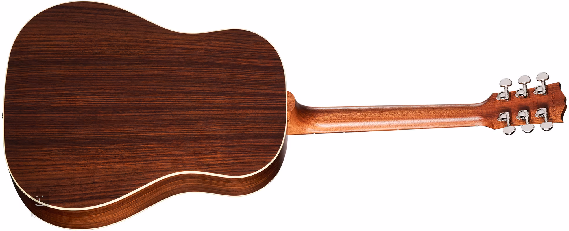 Die Decke der J-45 Studio Rosewood Natural besteht aus massivem Sitka-Fichtenholz, Boden und Zargen sind aus massivem Palisander gefertigt. Die Kombination dieser Materialien und die standardmäßige Korpustiefe verleihen der Gitarre einen warmen, klangvollen Ton mit satteren Bässen und Höhen als bei Mahagoni-Modellen. Die Resonanz der Decke wird durch eine reduzierte X-förmige Verstrebung unterstützt; der Korpus ist mit einer dünnen Schicht Nitrocelluloselack überzogen (Decke glänzend, Boden und Zargen matt).