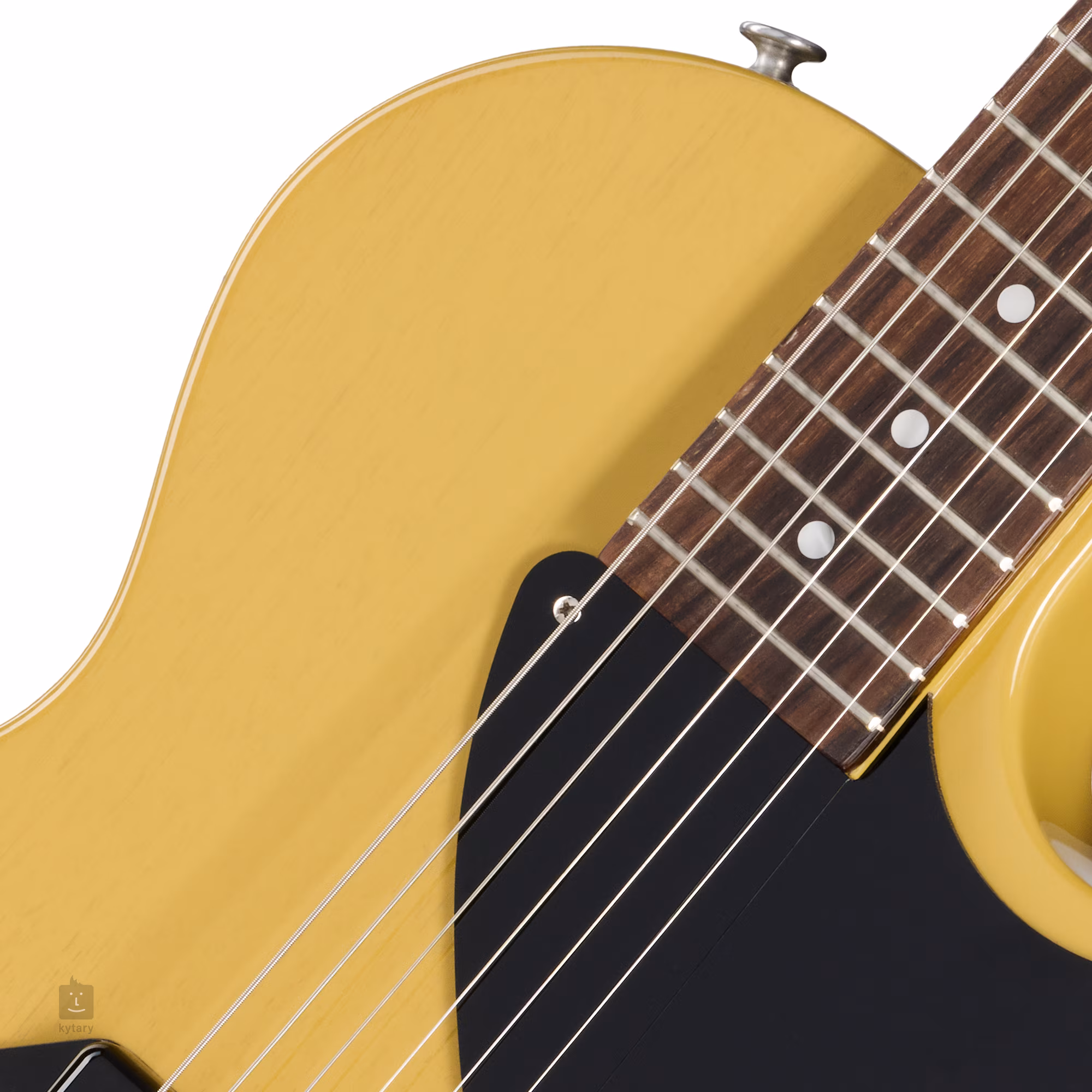 Die Les Paul Junior TV Yellow E-Gitarre ist eine Reminiszenz an die ursprünglichen Single-Cut-Modelle von 1954. Der Korpus des Instruments ist aus Mahagoni gefertigt. Eine dünne Schicht Nitrocellulose-Lack lässt das Holz der Gitarre atmen und verbessert die Klangeigenschaften des Instruments. Der Mahagoni-Hals ist auf ein Palisander-Griffbrett mit einem authentischen Vintage 50s-Profil geleimt und mit zweiundzwanzig Medium Jumbo-Bünden ausgestattet. Die Orientierung auf dem Griffbrett wird durch Positionspunkte aus Perlmuttimitat erleichtert.