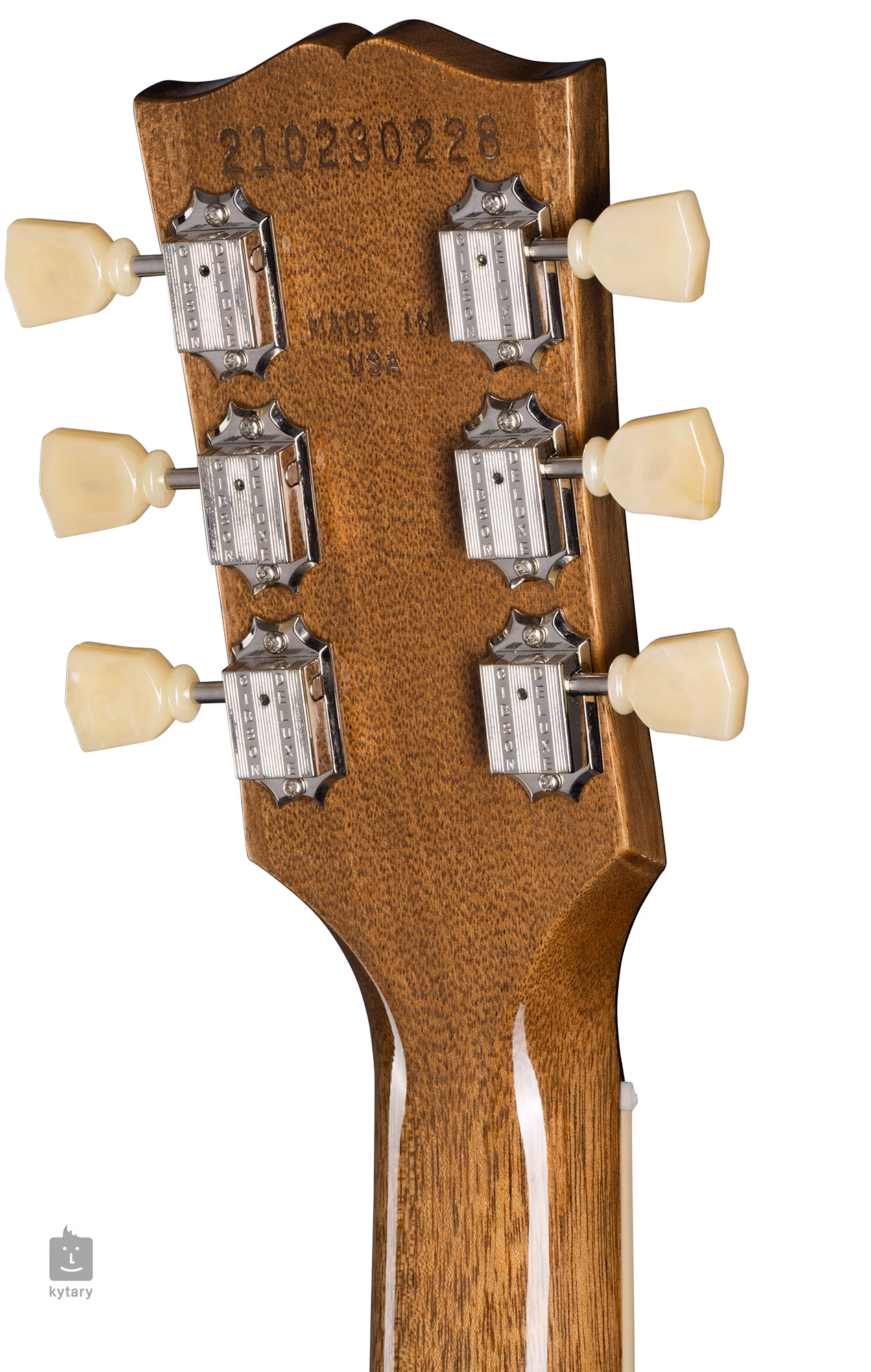 Zwei Humbucker Burstbucker 1 und 2 mit Alnico II-Magneten und Lower/Mid-Output bieten den Sound und das Spielgefühl von Gibsons legendären Vintage-PAF-Pickups. Die Tonabnehmer sind mit Volume- und Tone-Potentiometern und "Orange Drop"-Kondensatoren handverlötet. Mit einem Drei-Positionen-Schalter können Sie zwischen den Tonabnehmern wechseln. Die stabile Stimmung wird durch die Montage der Saiten durch die ABR 1 Tune-O-Matic-Brücke in den Saitenreitern und durch den Graphtech-Nullbund in den Vintage Deluxe-Stimmmechaniken mit Keystone-Wirbeln gewährleistet. Das stilvolle Design des Instruments wird durch Nickel-Hardware und ein cremefarbenes Schlagbrett akzentuiert.