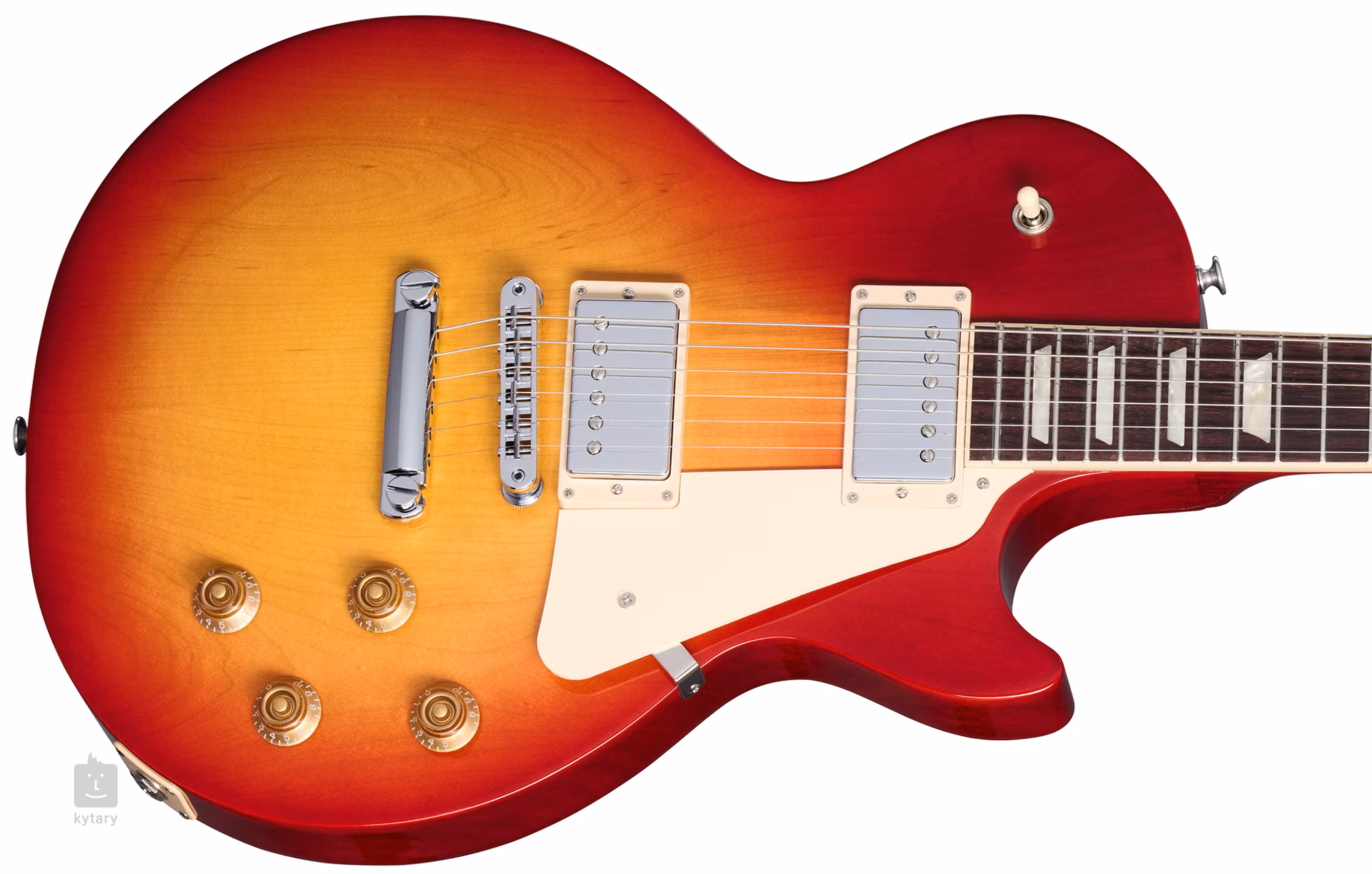 Der Mahagonikorpus der Les Paul Studio Heritage Cherry Sunburst Gitarre wird von einer geschnitzten Ahorndecke bedeckt. Dank der Resonanzkammern im Korpus (Ultra Modern Weight Relief Treatment) ist das Instrument deutlich leichter als klassische LP-Modelle, behält aber den typischen Les Paul Sound und das Spielgefühl. Die dünne Lackierung in Form eines Nitrocelluloselacks lässt das Holz der Gitarre atmen und verstärkt die klanglichen Eigenschaften des Instruments.