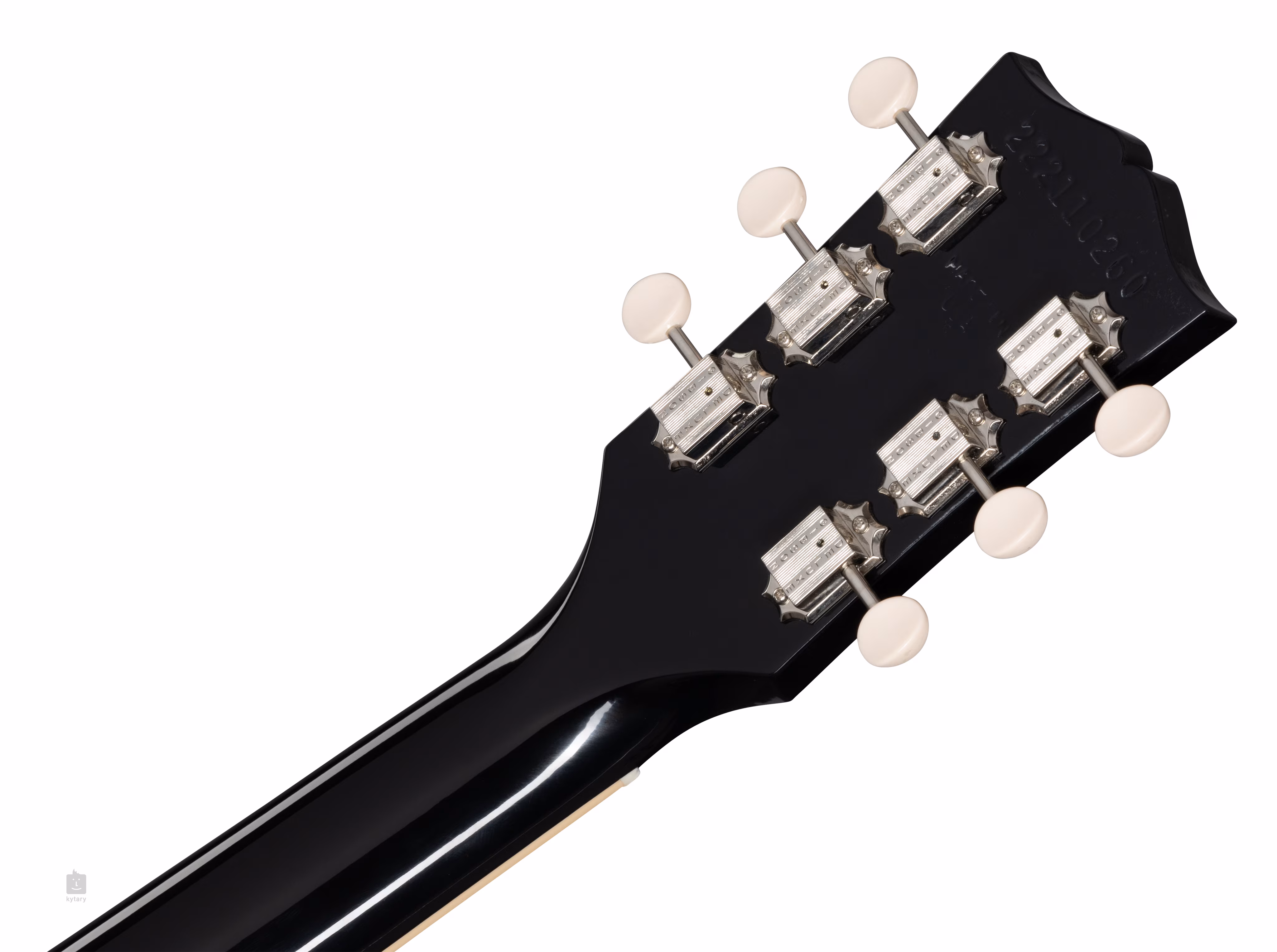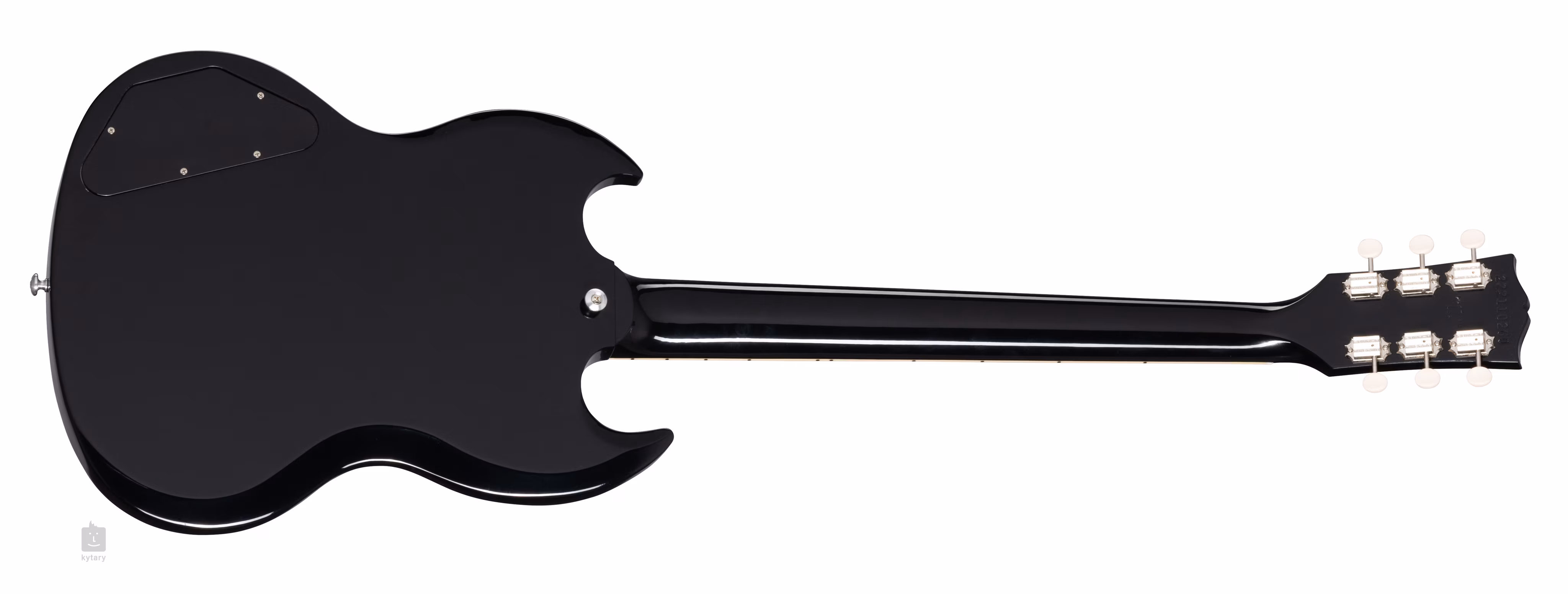 Die SG Special Ebony verfügt über das klassische SG-Design aus den frühen 1960er Jahren. Der Mahagonikorpus der Gitarre ist mit einer dünnen Schicht Nitrocelluloselack überzogen, die das Holz atmen lässt und die klanglichen Eigenschaften des Instruments verbessert. Ein Mahagoni-Hals mit einem komfortablen Slim-Taper-Profil ist auf ein Palisander-Griffbrett geklebt, das mit zweiundzwanzig Medium-Jumbo-Bünden ausgestattet ist. Die Orientierung auf dem Griffbrett wird durch Positionspunkte aus Perlmuttimitat erleichtert.