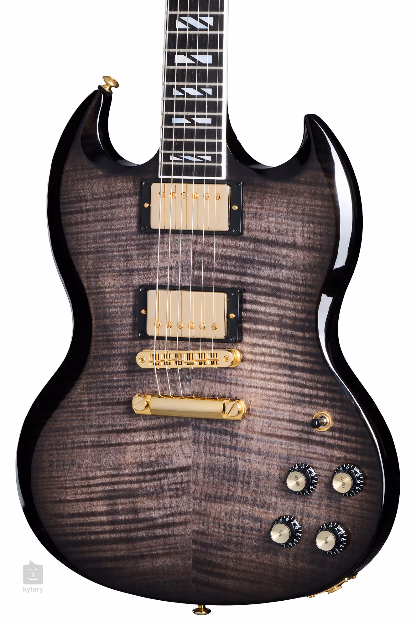 Mit der SG Supreme Translucent Ebony Burst E-Gitarre aus der Modern-Serie kehrt das High-End-Design der SG Supreme zurück auf den Markt. Der Mahagonikorpus der Gitarre ist mit einer spektakulären, gemaserten AAA-Qualität Ahorndecke und einer dünnen Schicht Nitrocellulose-Lack versehen, die das Holz atmen lässt und die klanglichen Qualitäten des Instruments hervorhebt. Der Mahagoni-Hals mit Slim Taper-Profil und das Ebenholz-Griffbrett mit Compound-Radius bieten eine hervorragende Bespielbarkeit und ein völlig natürliches Spielgefühl. Die Oberfläche des Griffbretts ist durch vierundzwanzig Medium Jumbo Bünde und Mother of Pearl Super Split Blocks unterteilt.