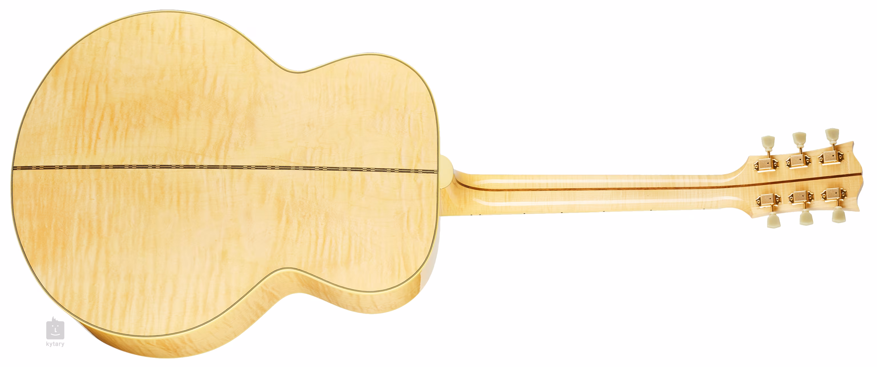 Die Vorderseite der SJ-200 Original ist aus massiver Sitka-Fichte gefertigt, während Boden und Zargen aus massivem, geflammtem Ahorn mit markanter Maserung bestehen. Die Resonanz der Decke wird durch eine handgeschnittene X-förmige Verrippung unterstützt. Der zweiteilige Ahornhals ist auf ein Palisandergriffbrett mit zwanzig Standardbünden geleimt. Die Orientierung auf der Griffbrettoberfläche wird durch dekorative Perlmuttkronen erleichtert.