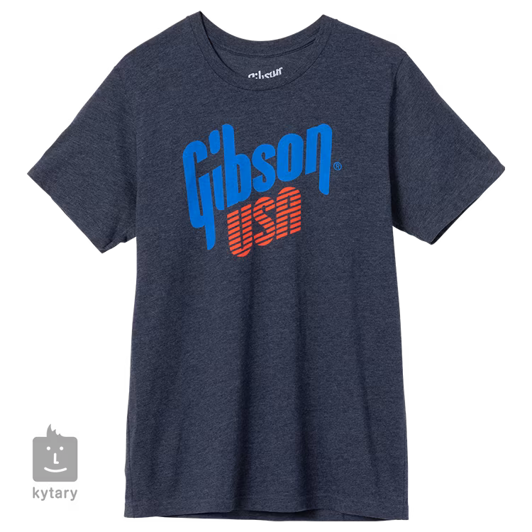 Unisex-T-Shirt mit Gibson USA-Logo in Rot und Blau. Das gleiche Hemd tragen auch die Vorarbeiter in den Werkstätten des Unternehmens in Nashville. Das Hemd ist aus einer strapazierfähigen und bequemen Kombination aus 52% Baumwolle und 48% Polyester gefertigt.