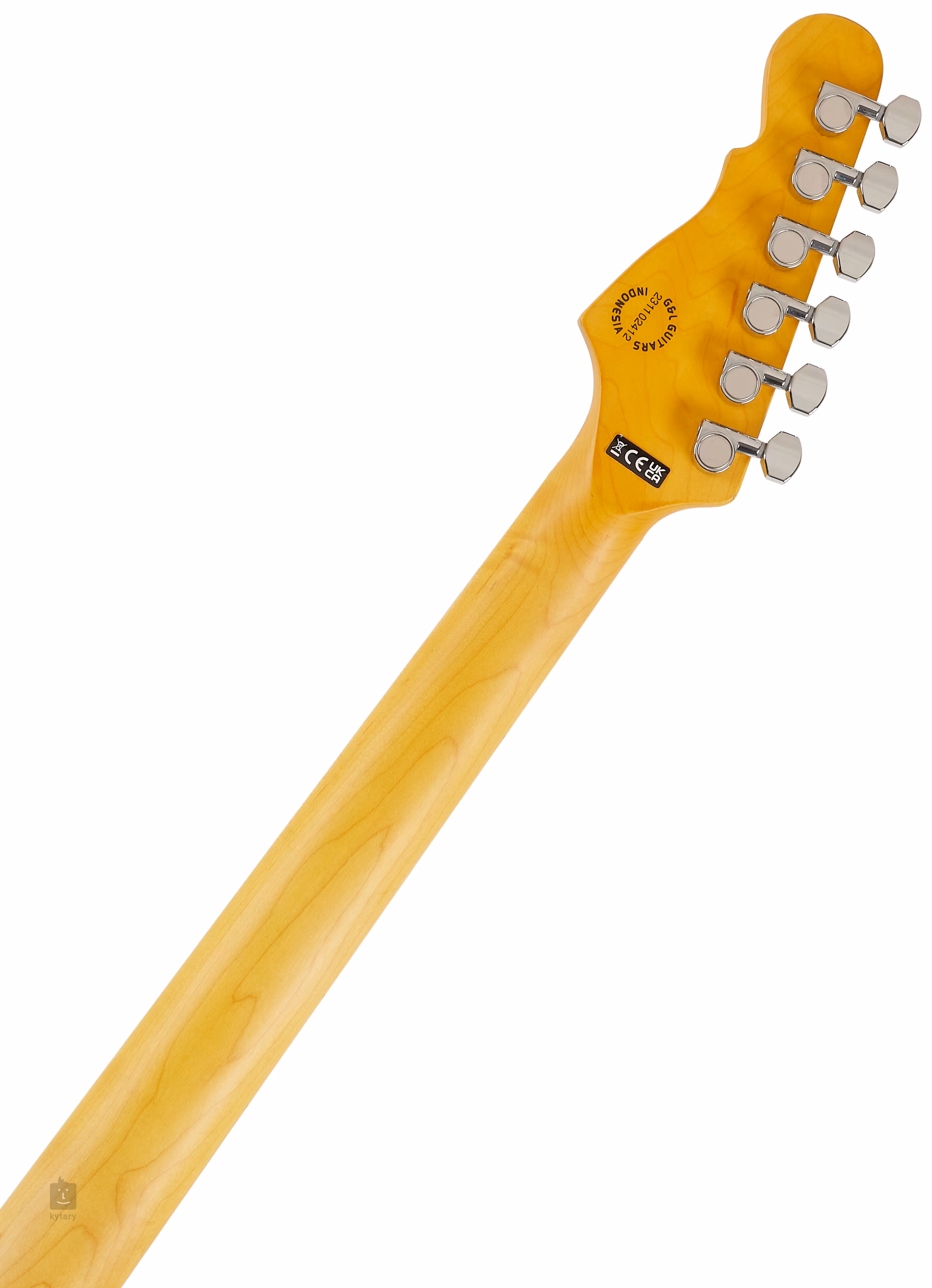 Die Saiten sind in Mechaniken mit einem Übersetzungsverhältnis von 18:1 und einem Dual-Fulcrum-Tremolo mit Messing-Sätteln und Zwei-Punkt-Aufhängung verankert. Die gute Verarbeitung wird durch das imitierte Perlmutt-Schlagbrett und die stilvolle Kopfplatte unterstrichen.