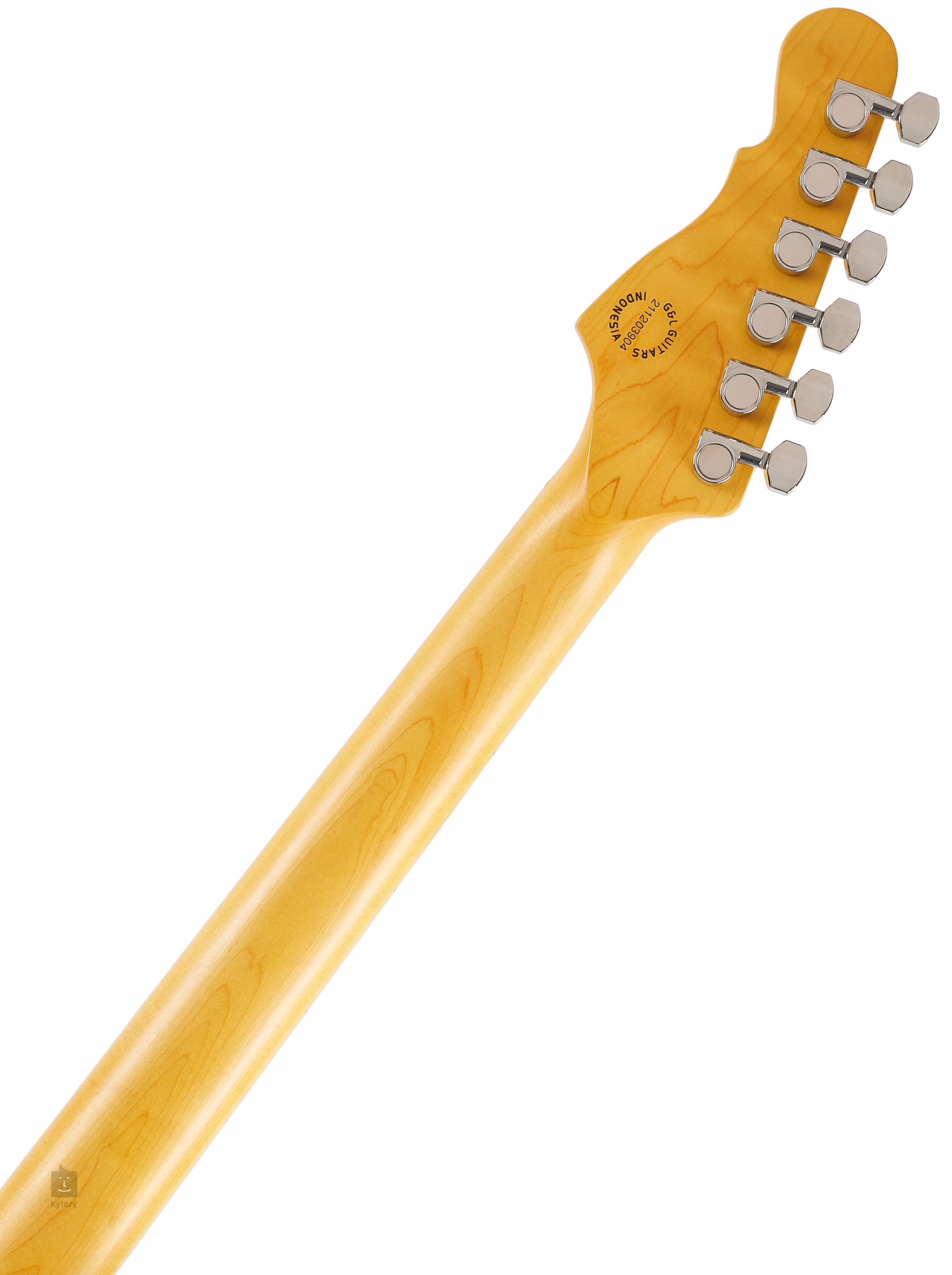 Die Saiten sind in Stimmmechaniken mit einem Übersetzungsverhältnis von 18:1 und einem Dual-Fulcrum-Tremolo mit Zweipunktaufhängung verankert. Die gute Verarbeitung wird durch das dreilagige schwarze Schlagbrett und die stilvolle Kopfplatte des Instruments unterstrichen.