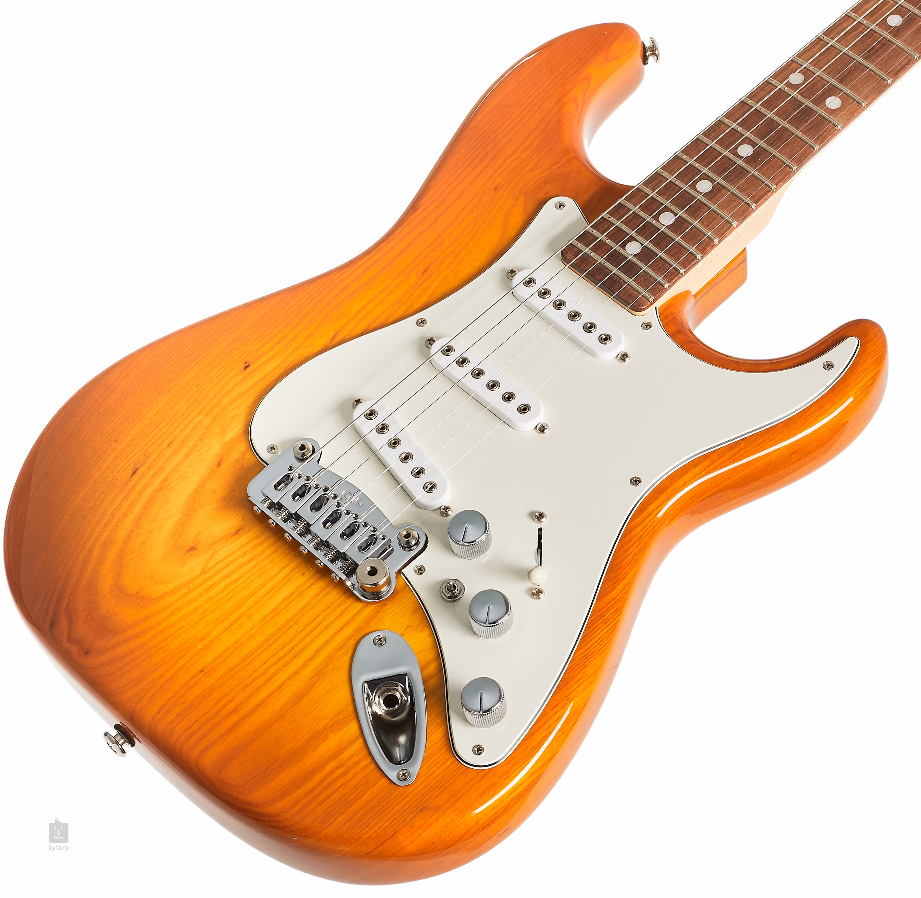 Der Korpus der Gitarre ist aus Sumpfesche gefertigt. Ein Ahornhals mit Modern Classic-Profil ist auf ein Palisander-Griffbrett geleimt, das mit zweiundzwanzig Medium-Jumbo-Nickelbünden ausgestattet ist. Positionspunkte auf dem Griffbrett erleichtern die Orientierung.