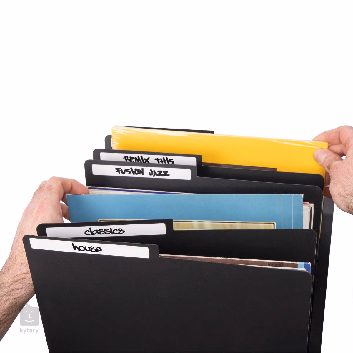 Der markante obere Teil bietet Platz für Etiketten oder Aufkleber und ermöglicht eine schnelle Orientierung auch in größeren Sammlungen. Er eignet sich nicht nur für Heimsammlungen, sondern auch für den professionellen Einsatz in Schallplattengeschäften, wo er Kunden hilft, die gesuchten Titel schnell zu finden.