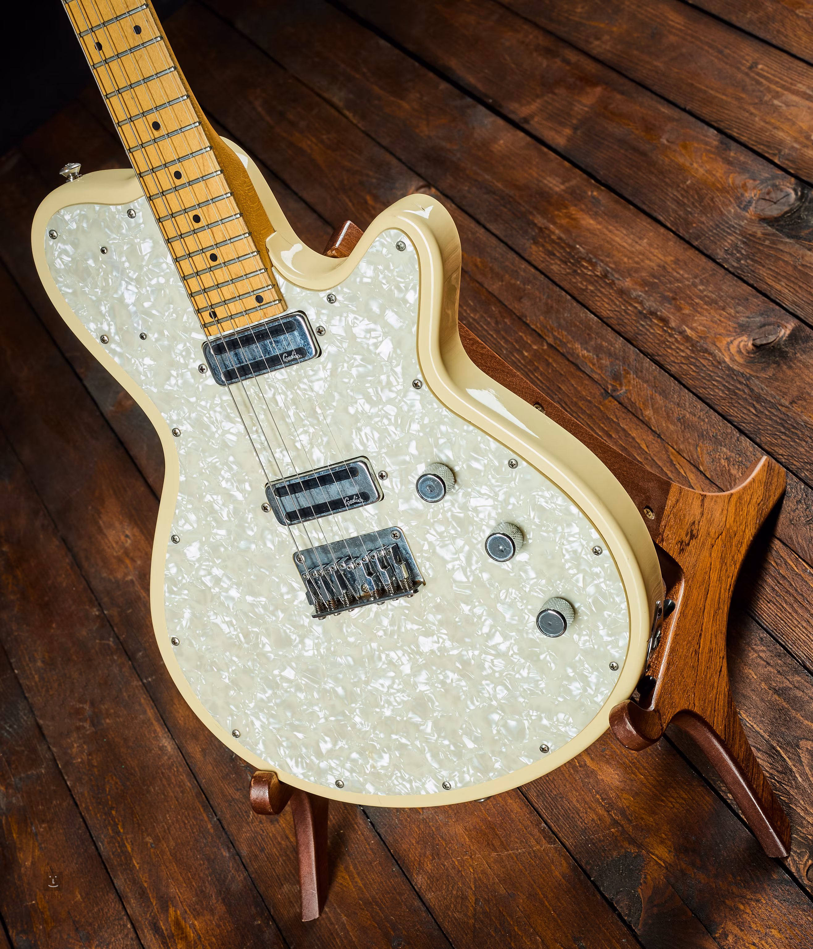 Eine E-Gitarre mit original kanadischem Design. Die Radiator beeindruckt mit einem großen Schlagbrett, das sich fast über den ganzen Korpus erstreckt, und einer stilvollen Kopfplatte.