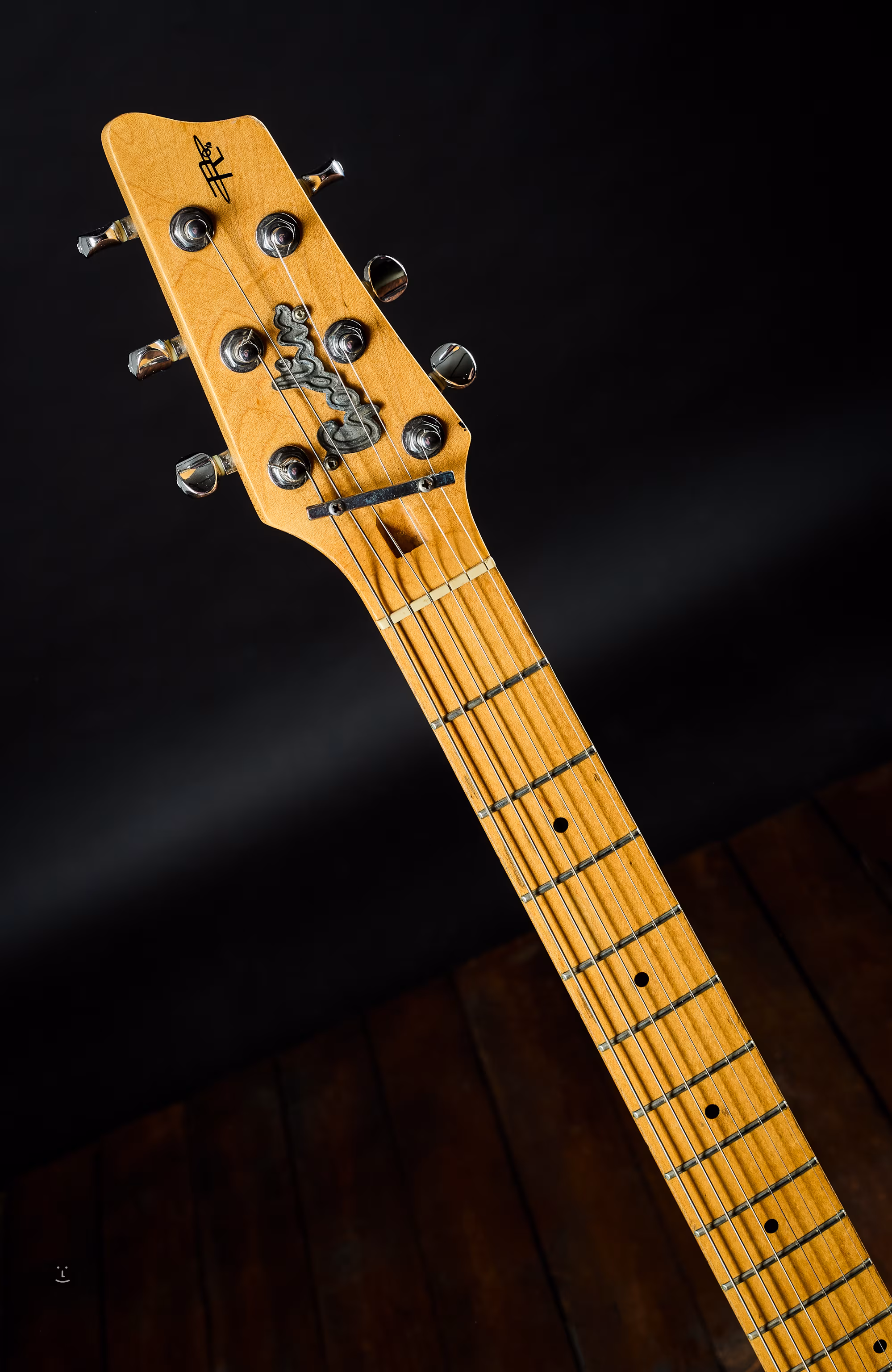 Eine E-Gitarre mit original kanadischem Design. Die Radiator beeindruckt mit einem großen Schlagbrett, das sich fast über den ganzen Korpus erstreckt, und einer stilvollen Kopfplatte.