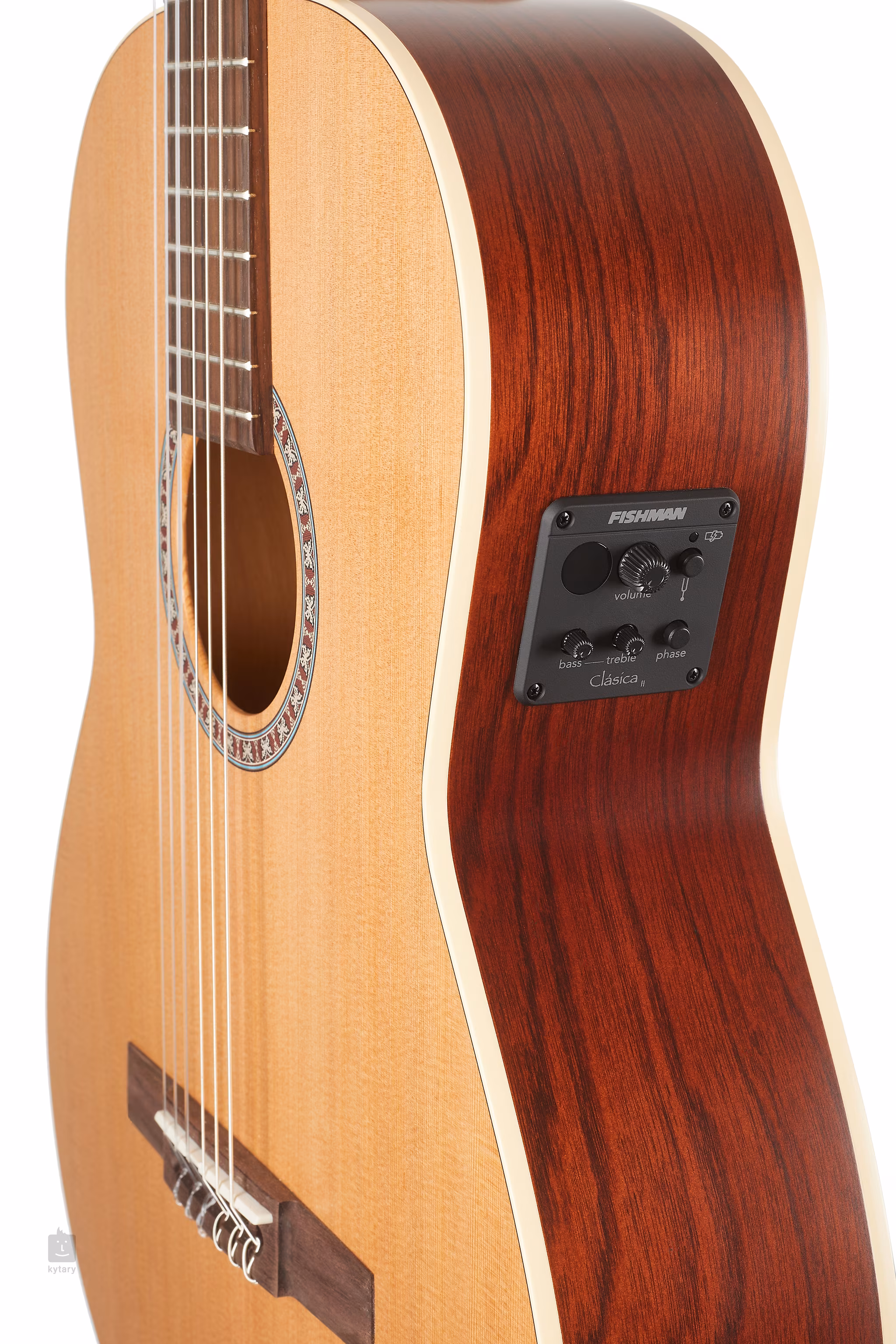 Für den Sound sorgt die aktive Fishman Clásica II-Elektronik mit Zweiband-Equalizer, eingebautem Stimmgerät und Phasenregler zur Unterdrückung von Rückkopplungen bei höheren Lautstärken.