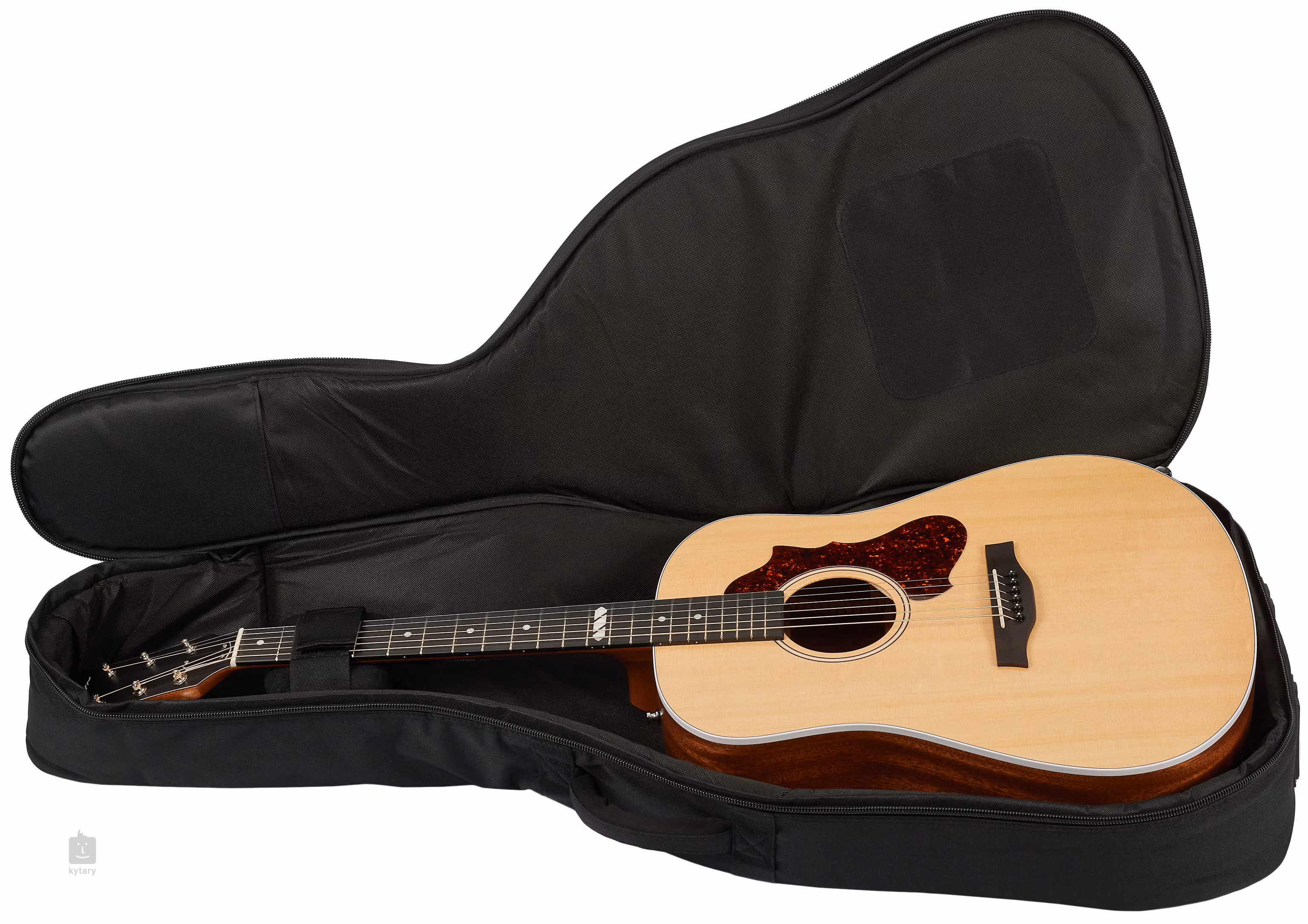 Der Ton wird von einem LR Baggs Element Subcoil-Pickup eingefangen, während der Vorverstärker mit Volume- und Tone-Regler diskret im Schallloch der Gitarre platziert ist. Die Gitarre wird in einem Gigbag geliefert.